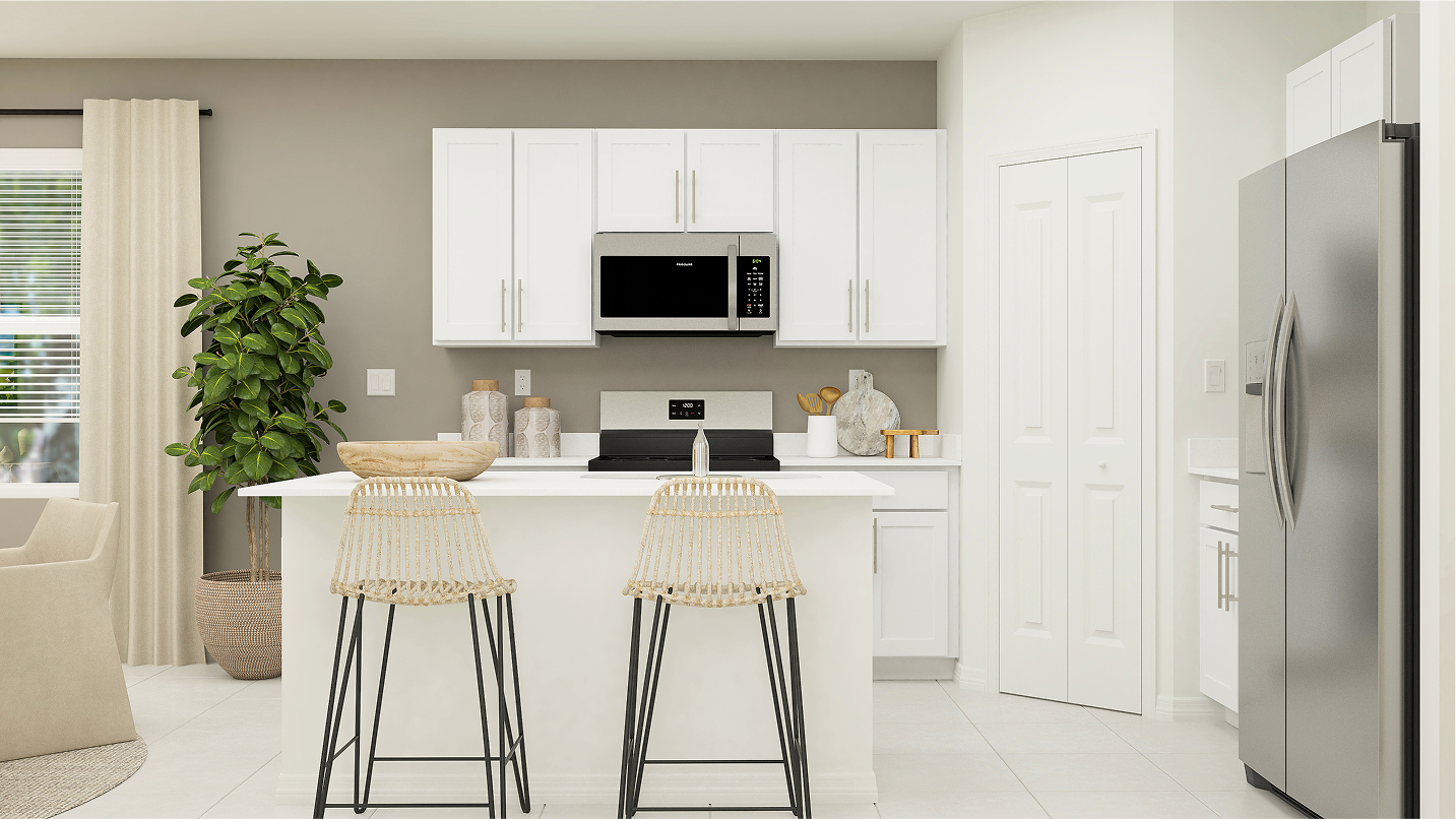 On the first floor of this new two-story home is a modern, free-flowing layout shared among a chef-ready kitchen, an intimate dining area and a family room made for gatherings. A rear patio extends the space into the backyard for outdoor activities. All four bedrooms reside on the upper level to provide peaceful retreats, including the private owner’s suite with an attached bathroom and walk-in closet.