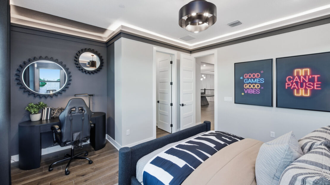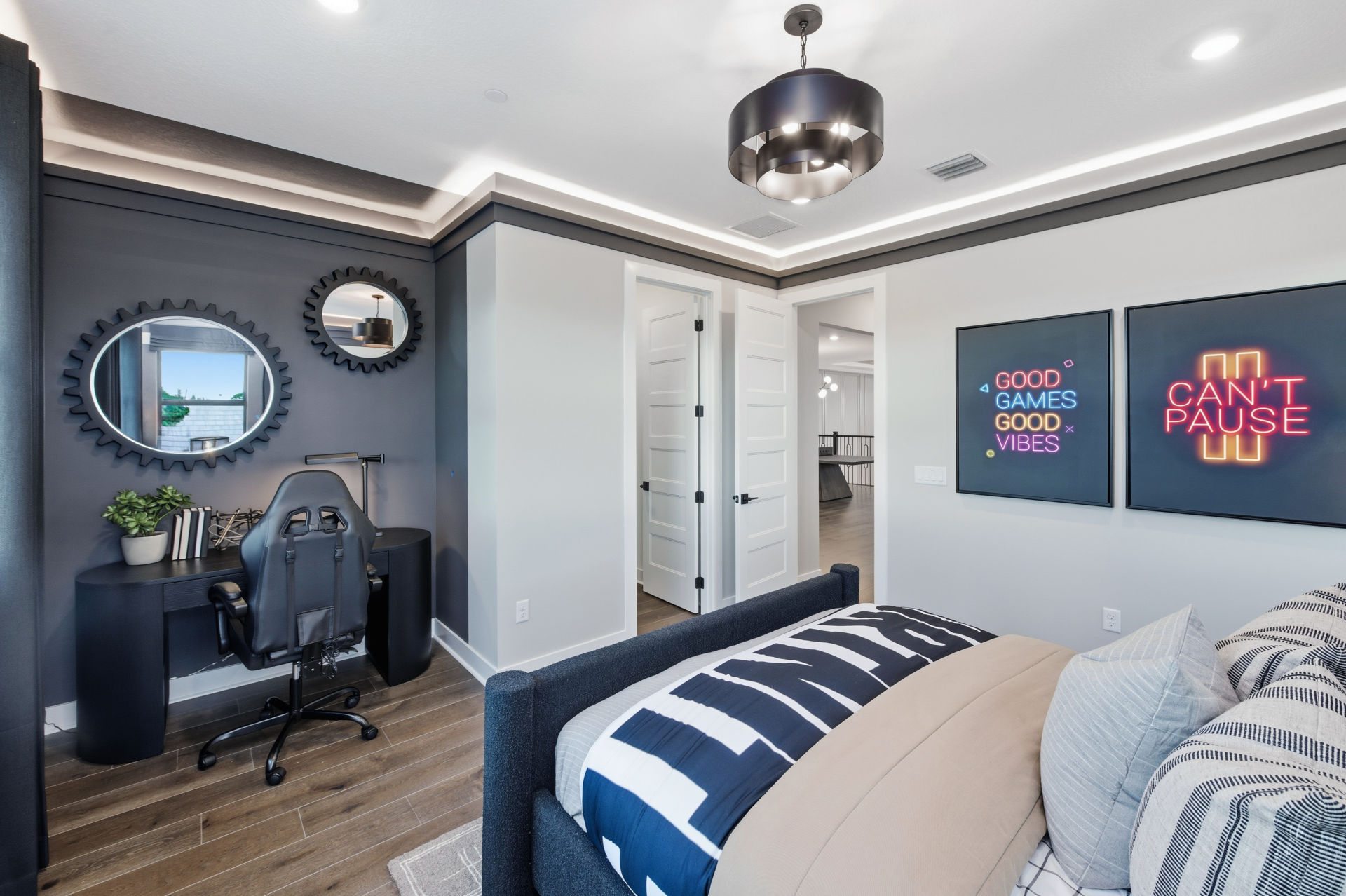 A standout feature of the Livingston II is its private multi-generation suite, offering comfort and independence for extended family members or guests. The home also includes luxurious owner’s suite options with spa-inspired bathrooms and spacious closets, ensuring a personal retreat within your home. Additional bedrooms provide versatile spaces for children, offices, or hobby rooms, accommodating a dynamic modern lifestyle.