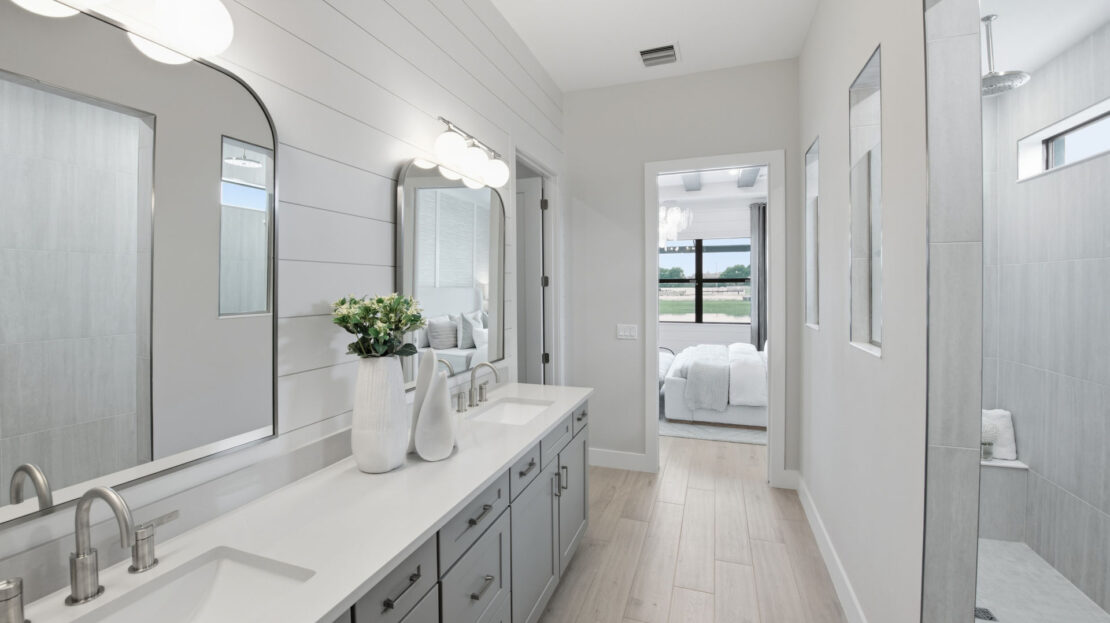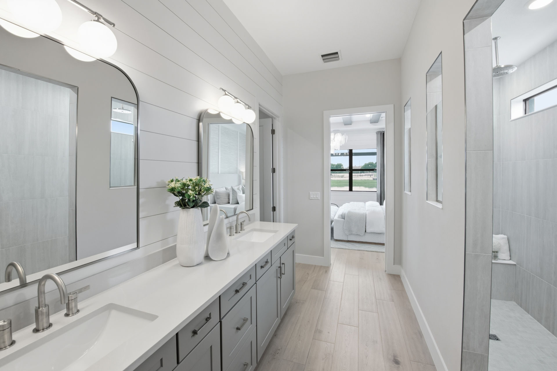 The private owner’s suite provides a serene retreat, complete with a luxurious bathroom featuring dual vanities, a walk-in shower, and an expansive walk-in closet. Additional bedrooms are spacious and versatile, offering comfort for family or guests.