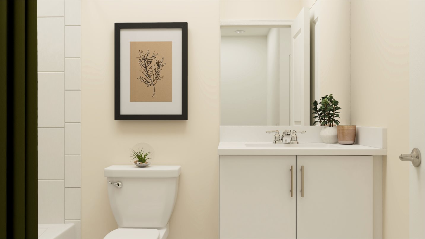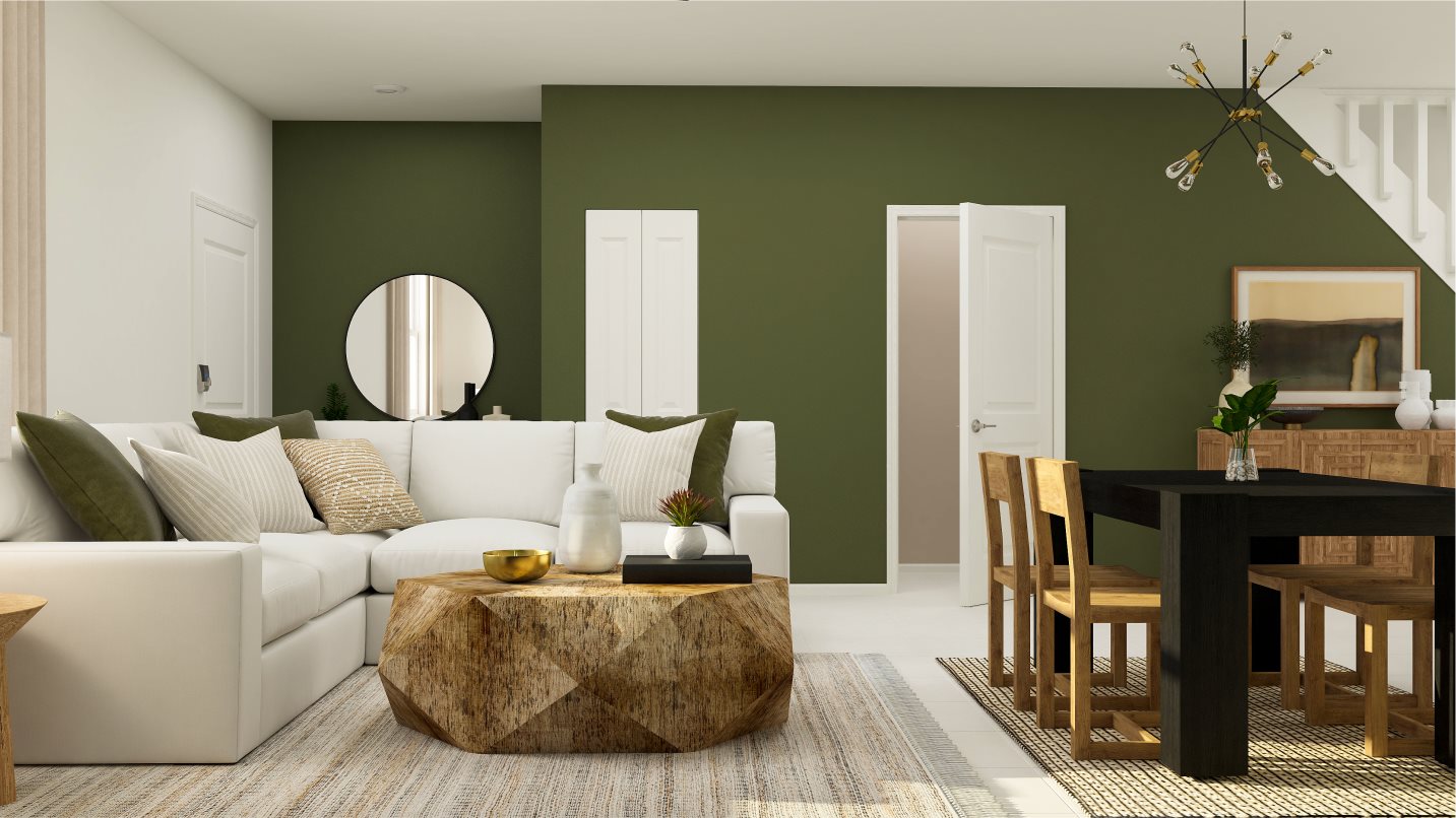 Spanning 1,376 square feet, the Aster is a two-story townhome that masterfully blends open-concept living with practical design. The first floor features a spacious Great Room seamlessly connected to a modern kitchen, providing a central hub for everyday living and entertaining. The layout allows for a dining area that accommodates meals with friends and family, while the adjacent patio offers an effortless transition between indoor and outdoor living, perfect for gatherings or quiet relaxation.