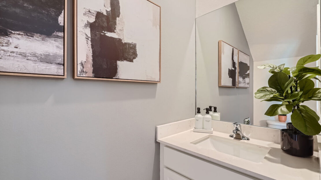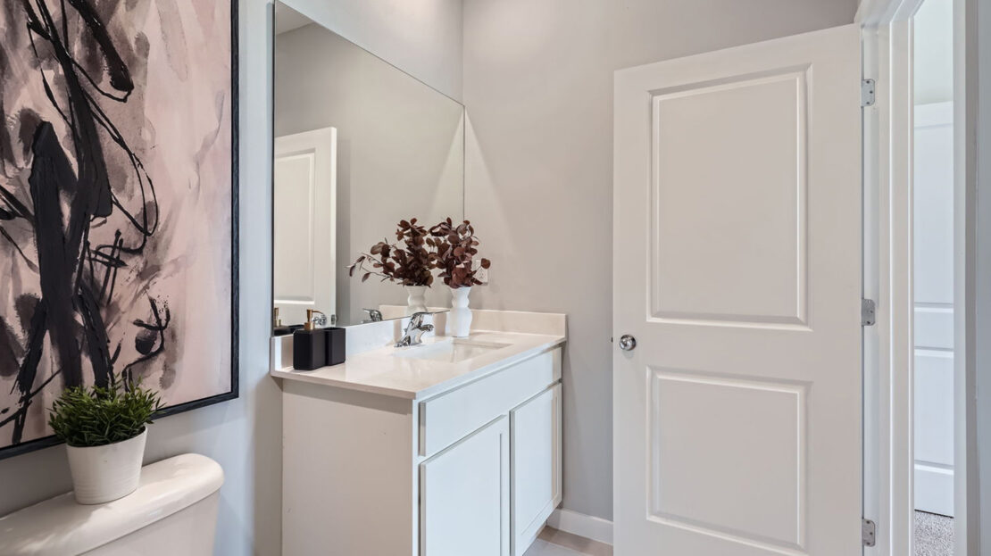 Inside, the Bella features three bedrooms and 2.5 bathrooms, all thoughtfully arranged to maximize privacy and convenience. The second floor houses all the bedrooms, creating a serene retreat away from the main living areas. The primary suite stands out with a spacious walk-in closet, offering ample storage and organization, while the accompanying en-suite bathroom provides a relaxing personal space. The additional bedrooms share a well-appointed full bathroom, making the layout practical for families or guests.
