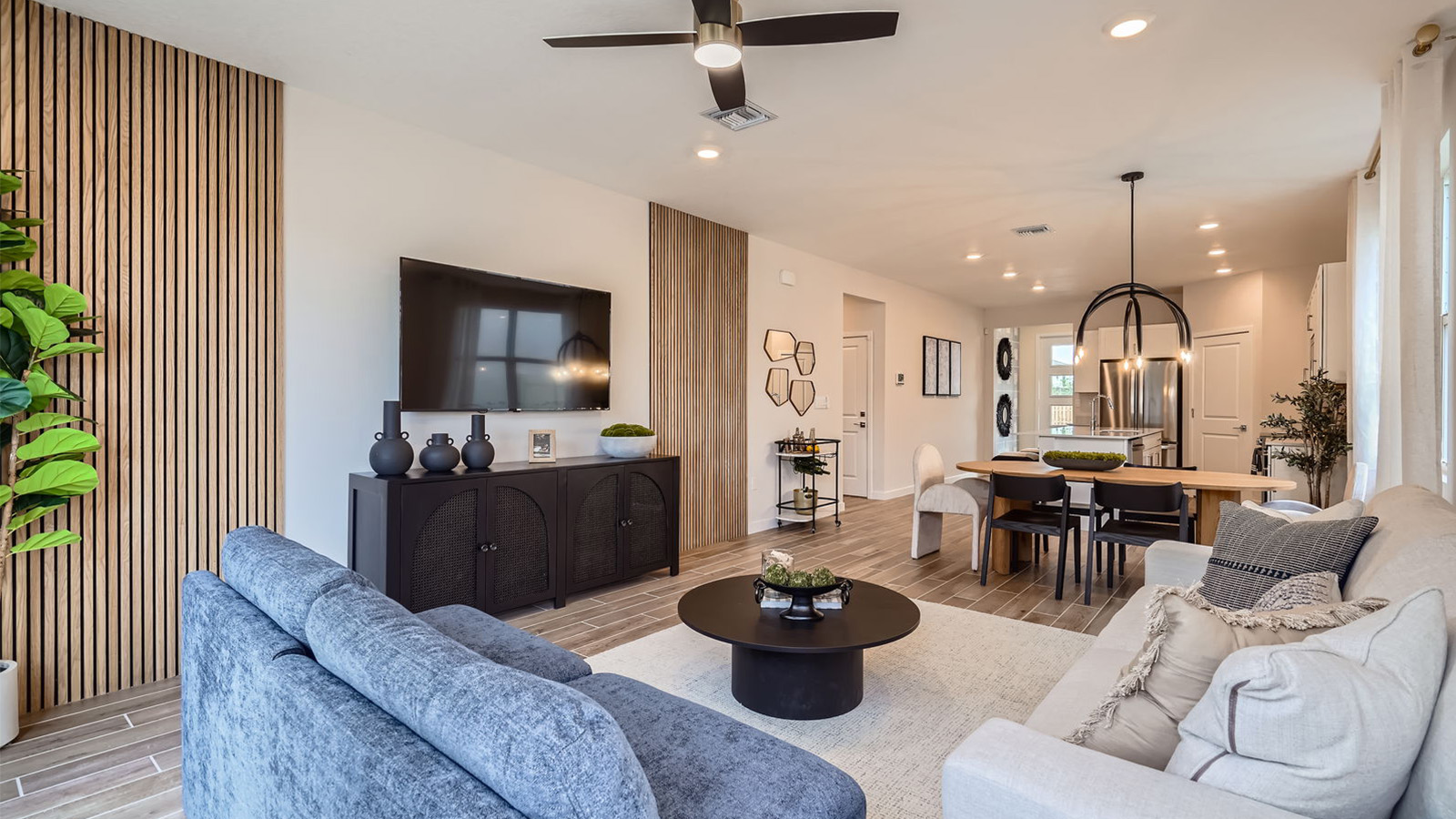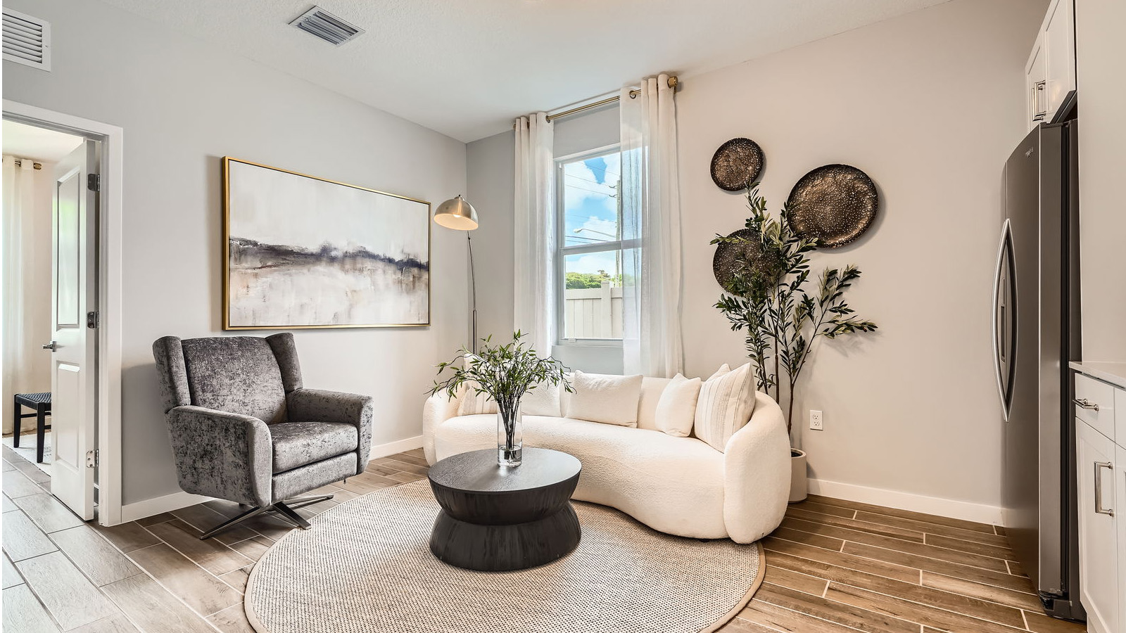 The Grandcourt also offers four distinct exterior elevations—classic, coastal, contemporary, and modern—allowing homeowners to select a style that best suits their taste and complements the vibrant Parker Pointe community. The open and flowing floorplan seamlessly integrates indoor and outdoor living, perfect for entertaining or enjoying Florida’s sunny climate.