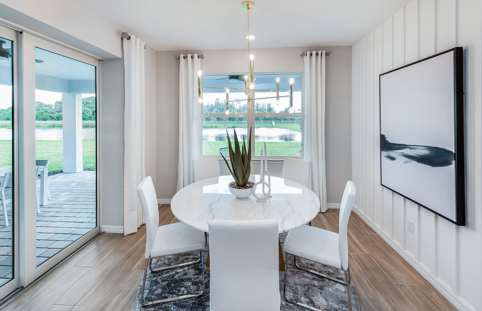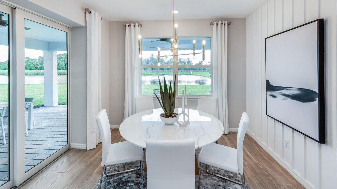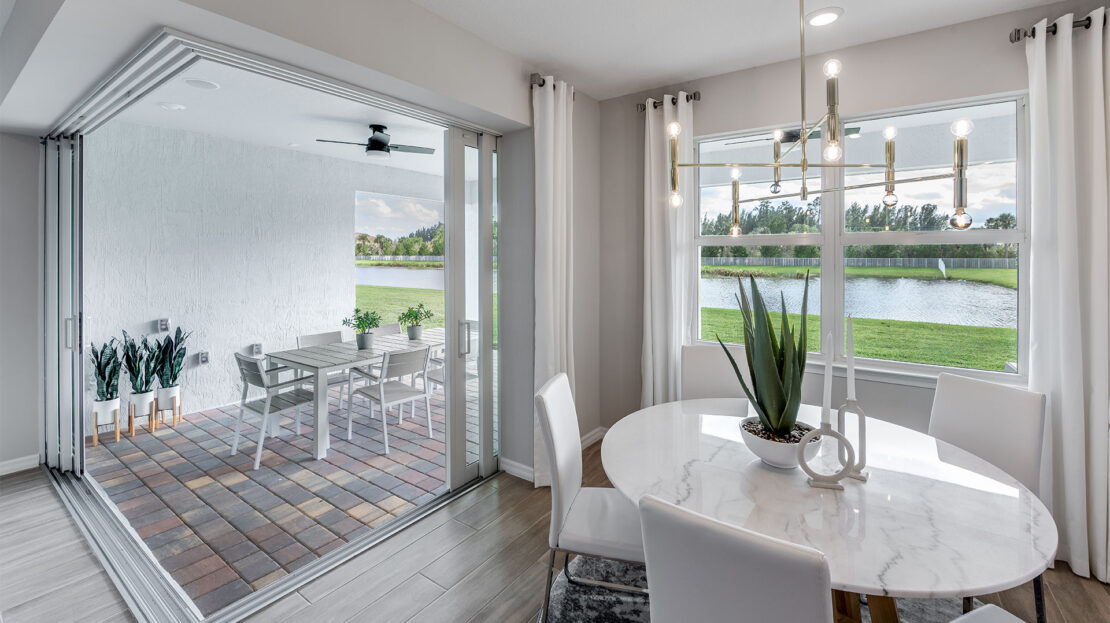For those who love indoor-outdoor living, the home can be enhanced with zero-corner sliding glass doors in the gathering room, opening up stunning views and seamlessly connecting interior spaces with the outdoors. This design feature allows homeowners to fully enjoy the expansive 4.61-acre homesite and the natural beauty surrounding the property.