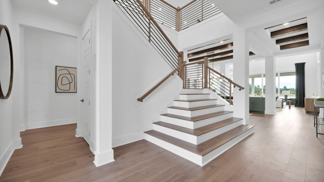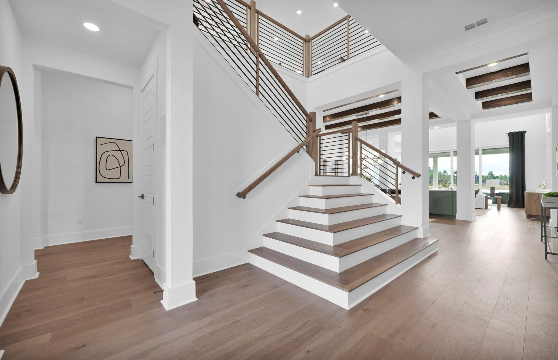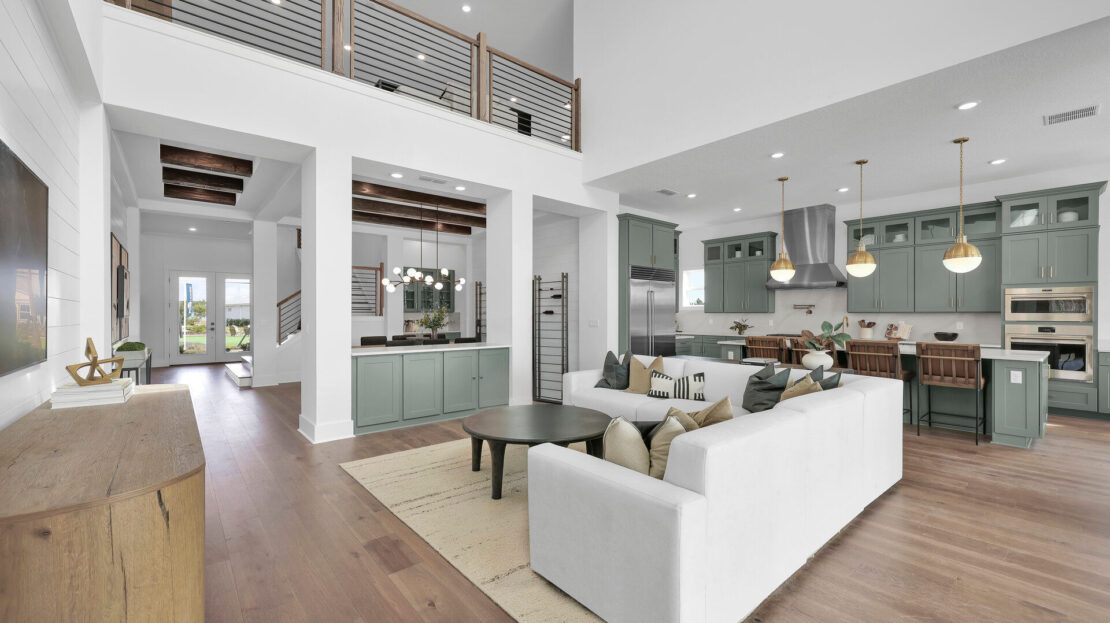 The Livingston II is the largest floor plan in the Estate Series, designed to impress at every turn. From its signature modern staircase to the pro-style kitchen and elegant owner’s suite, every detail reflects elevated living. Expand your indoor-outdoor lifestyle by adding zero-corner sliding glass doors to the gathering room—perfectly framing the beauty of your premium homesite.