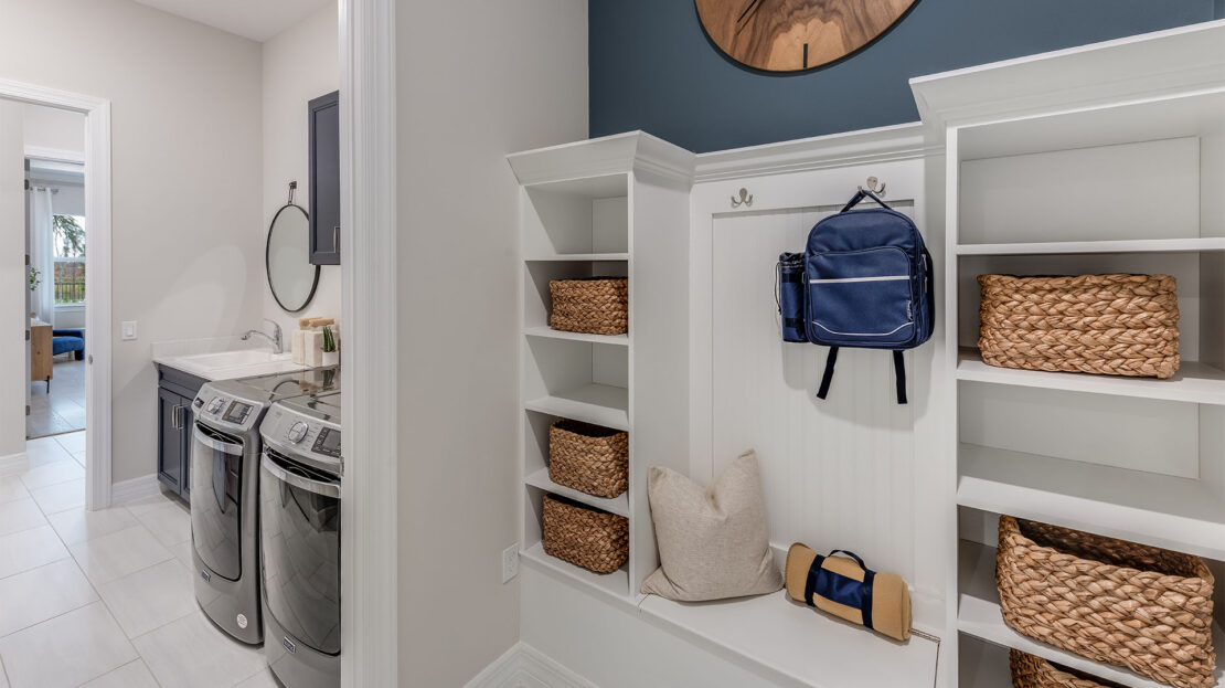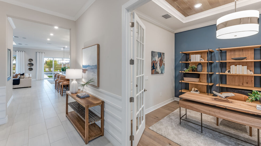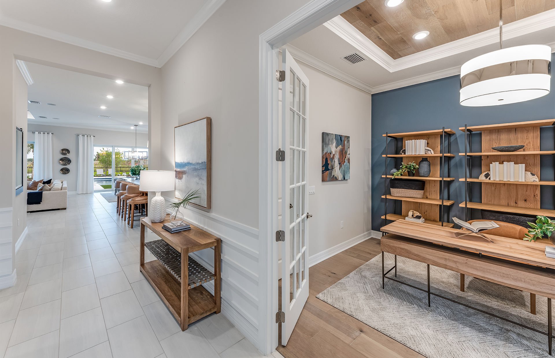 From the moment you step inside, the Reverence showcases an inviting floorplan designed for both comfort and entertainment. The heart of the home is the large island kitchen, seamlessly connected to the gathering room and café, creating an open and airy atmosphere perfect for family meals, casual get-togethers, or hosting guests. A covered lanai extends the living space outdoors, offering a serene setting for dining al fresco or relaxing while enjoying Florida’s beautiful weather.