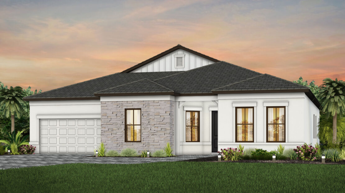 The Reverence, a stunning new home by DiVosta, is now available in the exclusive Greyhawk Landing community in Lake Worth, Florida. Part of the Estate Series, this single-family home perfectly blends luxurious design with functional living, offering 3 spacious bedrooms, 2.5 to 3 well-appointed bathrooms, and a 2-car garage across 2,669 square feet of thoughtfully designed space. With a starting price of $997,990, the Reverence exemplifies high-end living in a vibrant and welcoming neighborhood.