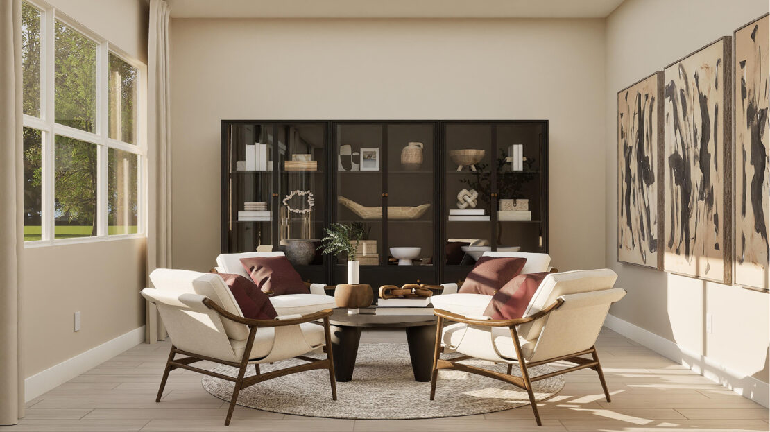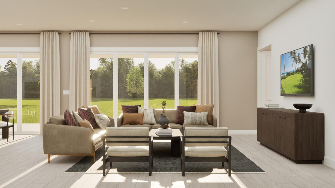 Designed with both style and function in mind, the home includes a versatile study and a club room that can easily adapt to the homeowner’s hobbies, work-from-home needs, or leisure activities. The first floor features a free-flowing layout that seamlessly connects the modern kitchen, spacious Great Room, and sunlit dining area. From the dining space, sliding doors lead to an oversized lanai, perfect for outdoor entertaining or enjoying Florida’s year-round sunshine.