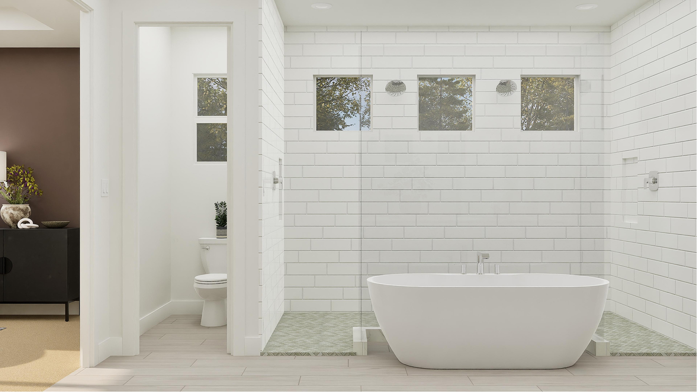 The Cambridge features five spacious bedrooms and four full bathrooms, complemented by two convenient half-bathrooms, ensuring ample space for family and guests alike. Each bedroom includes its own private en-suite bathroom, providing both comfort and privacy throughout the home. The owner’s suite is a true sanctuary, offering a spa-style soaking tub, dual vanities, and split walk-in closets, creating an ideal retreat for relaxation and rejuvenation.