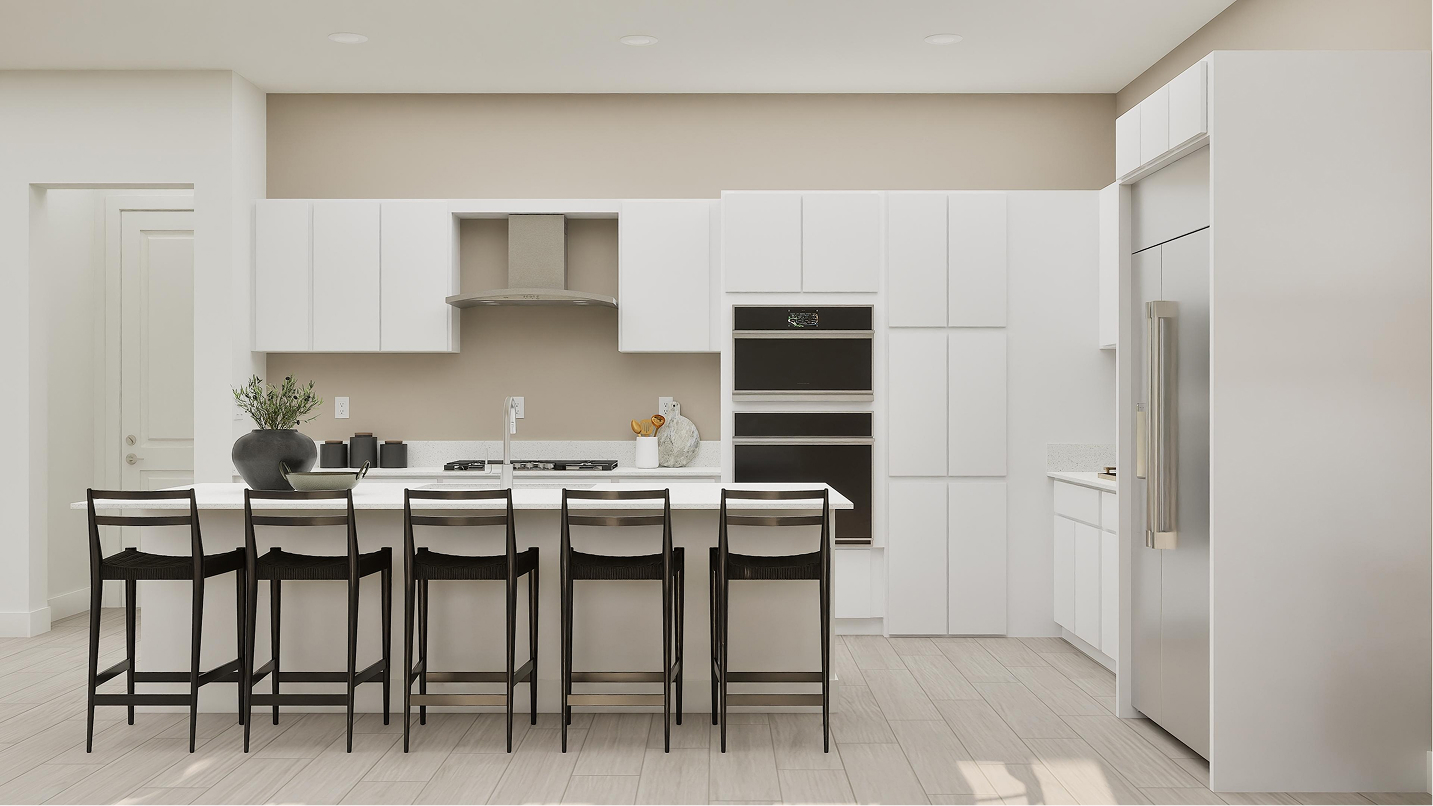 The kitchen itself is a modern chef’s dream, offering ample counter space, sleek cabinetry, and a layout that encourages both cooking and socializing. The integration of open spaces throughout the first floor allows natural light to flow freely, creating a warm and inviting atmosphere.