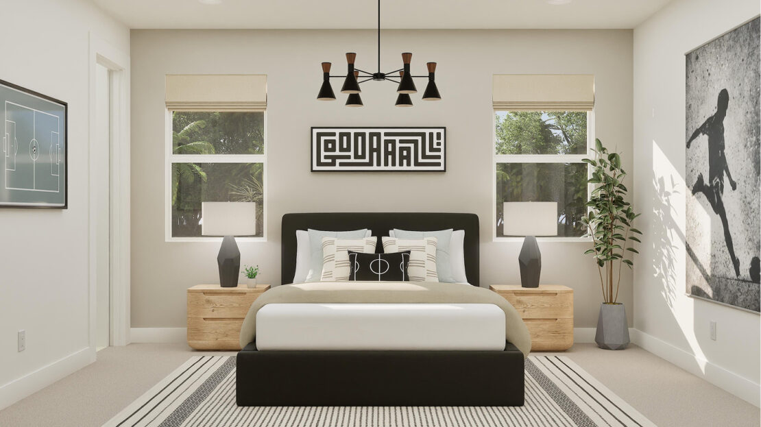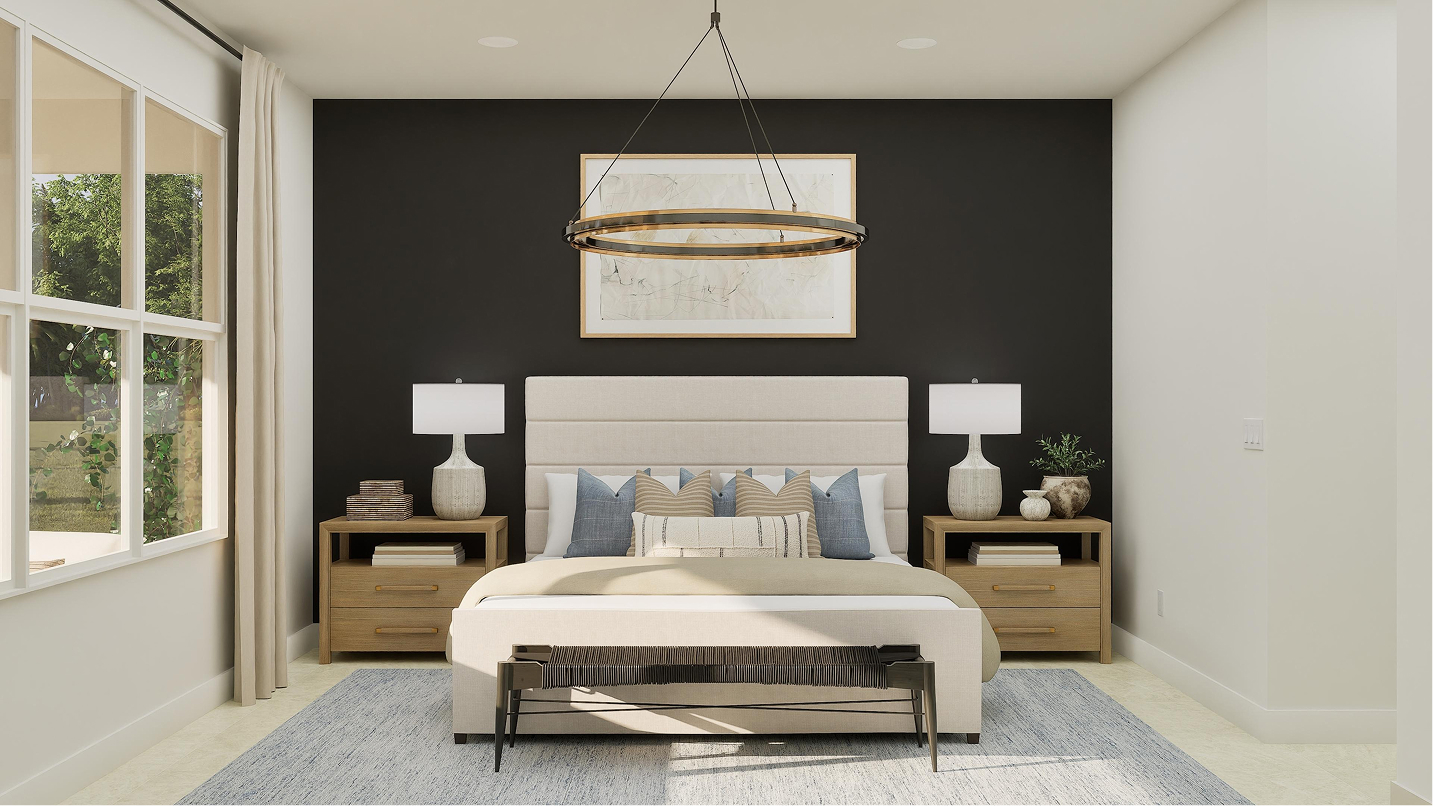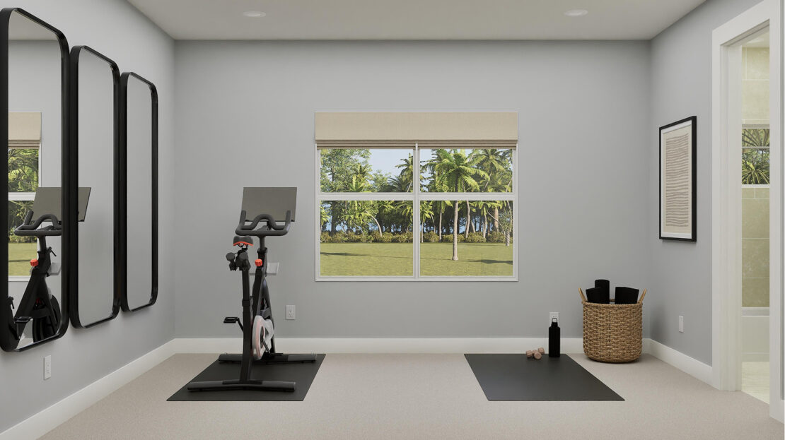 As you enter the Versailles, a double-height foyer welcomes you with grandeur, setting the tone for the sophisticated design throughout. Adjacent to the foyer is a secluded flex space, perfect for a home office, workout room, or creative studio, offering versatility to meet the needs of modern living.