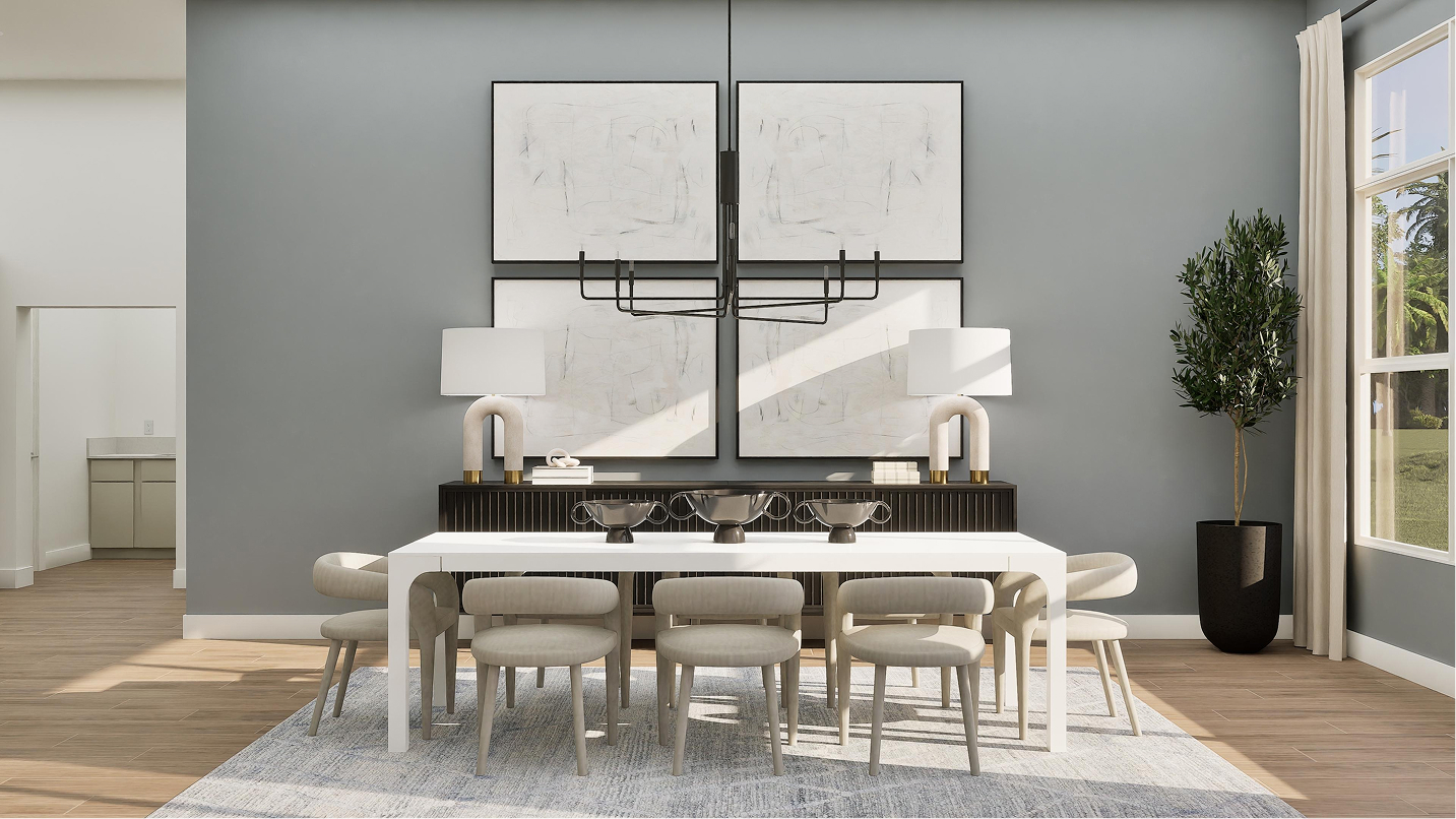 The Vanderbilt is a single-story architectural masterpiece that exudes sophistication from the moment you step through the front doors. The entryway welcomes you with an air of elegance, leading seamlessly into a spacious family room that serves as the heart of the home. Sunlight streams through large windows, creating a warm and inviting atmosphere, while French doors provide effortless access to a covered lanai, ideal for entertaining or enjoying tranquil outdoor moments.