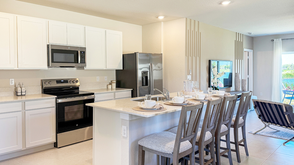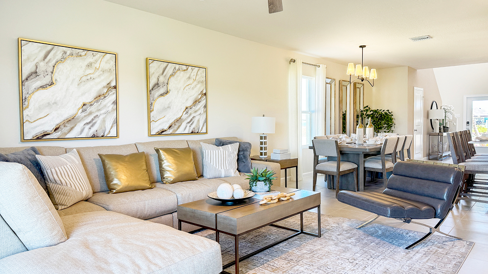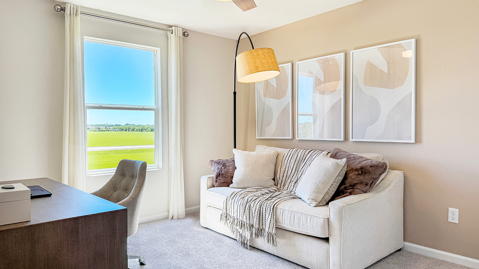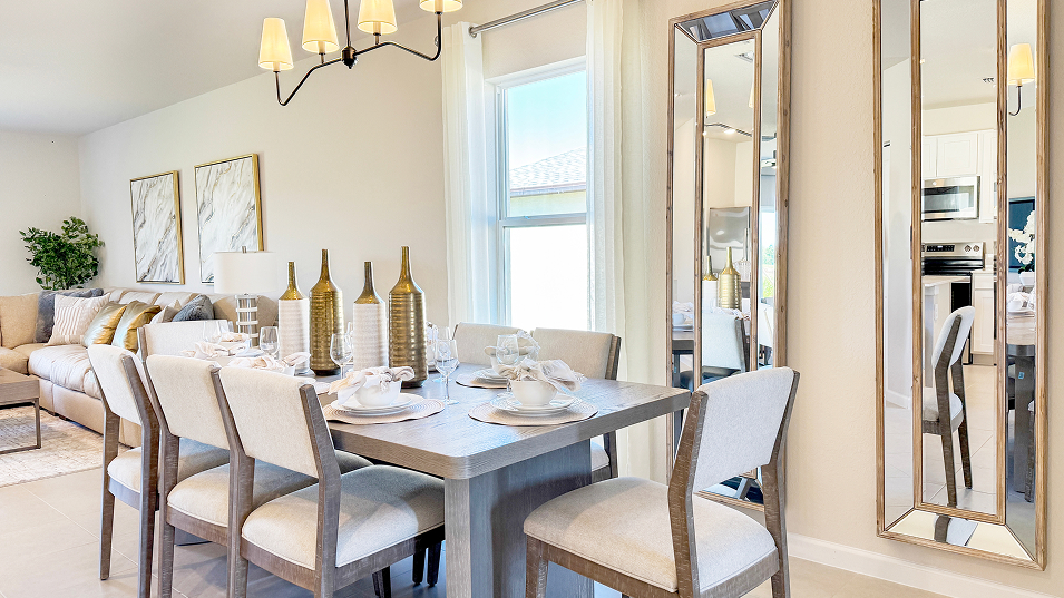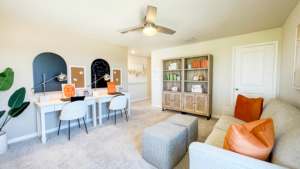 This new two-story home exudes casual elegance with a comfortable first-floor owner’s suite that features a full bathroom and walk-in closet. An open plan shared between the kitchen, living and dining areas provides easy access to a patio for a seamless and modern lifestyle. Four additional bedroom suites can be found upstairs near a versatile loft.