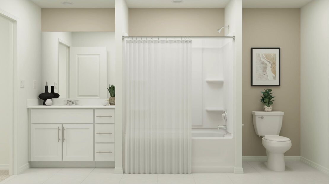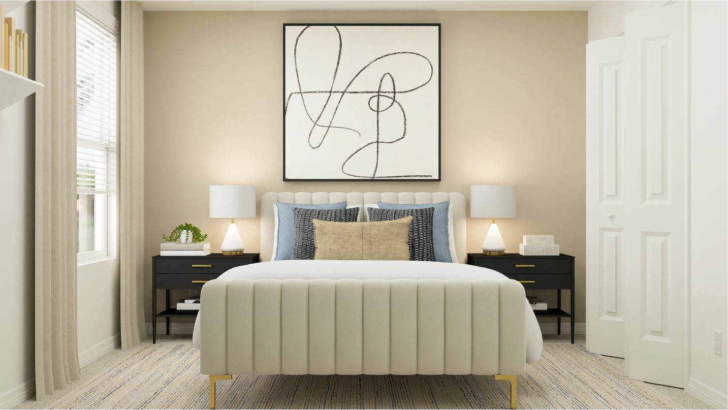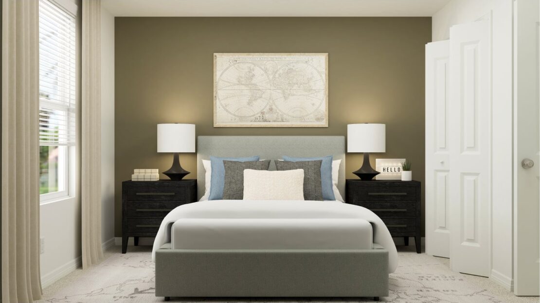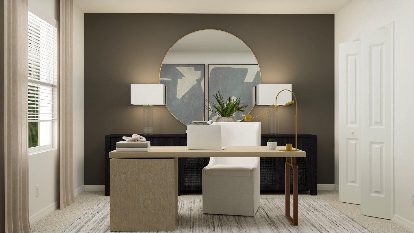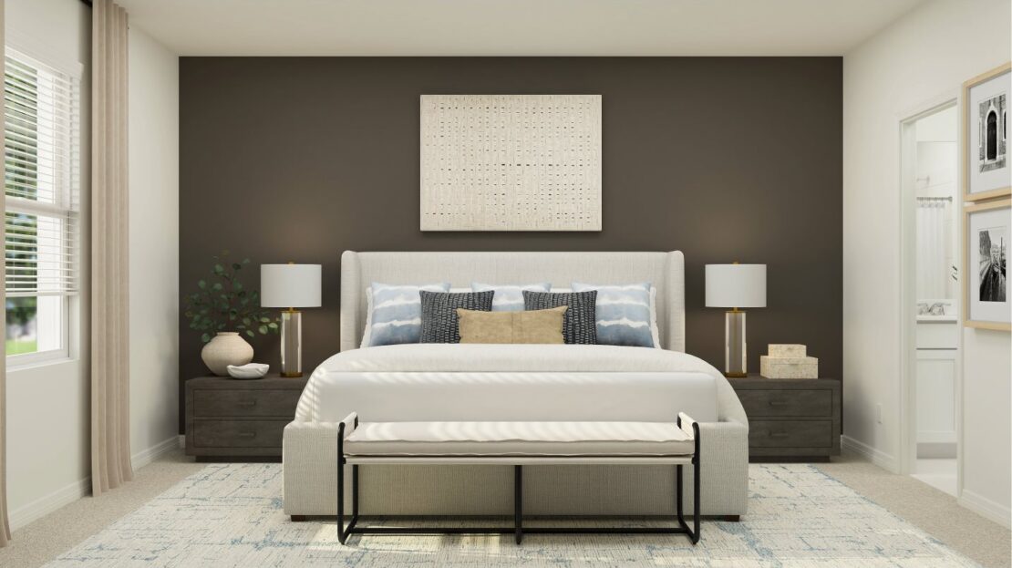 The first floor of this two-story home shares an open layout between the kitchen, dining room and family room for easy entertaining and access to a patio. A luxe owner’s suite is in a rear corner of the first floor, while a secondary bedroom is at the front, perfect for overnight guests, as well as a flex space which can transform to meet the homeowner’s needs. Upstairs are four secondary bedrooms and a loft for added living space.