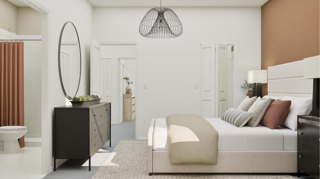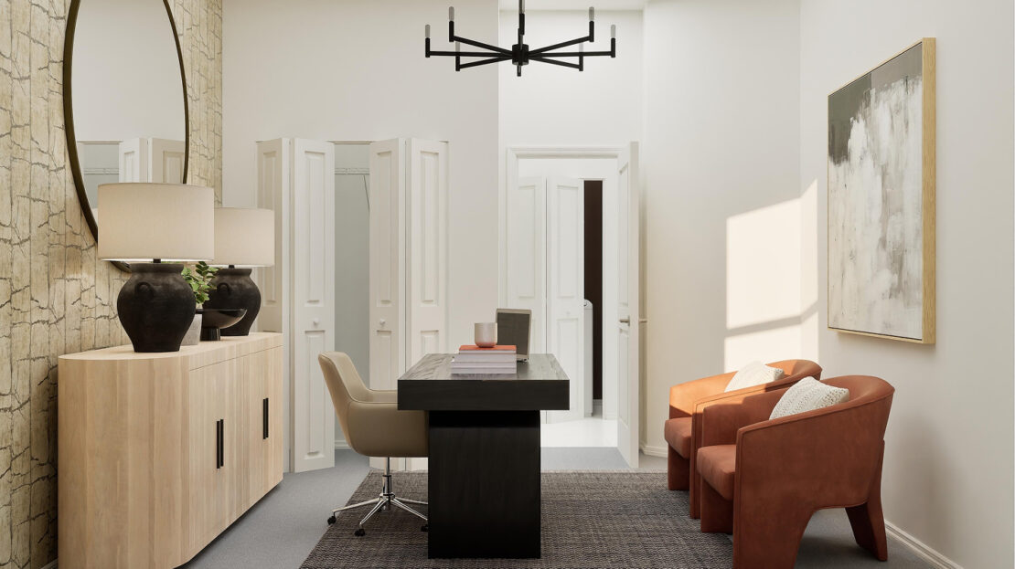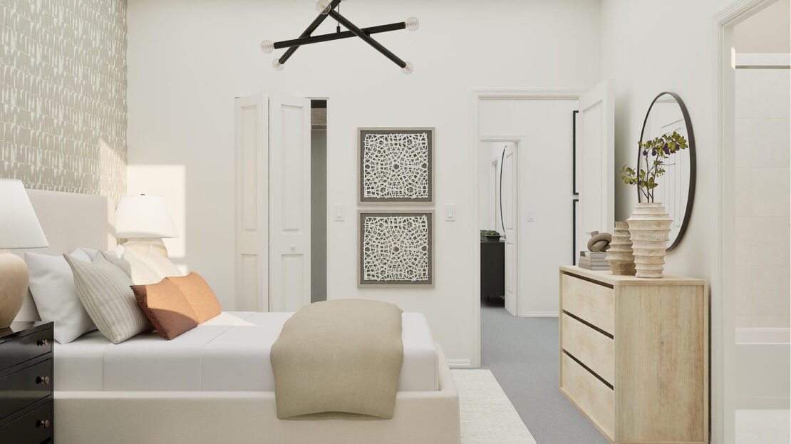 Spanning 1,373 square feet, the Ashbury’s open-concept layout is crafted to maximize both space and natural light. The main floor serves as the hub of daily life, featuring a modern kitchen equipped with sleek finishes and ample storage, a welcoming family room perfect for relaxation, and a dining area that flows effortlessly to a private patio—ideal for outdoor entertaining or quiet mornings with a cup of coffee. A convenient corner bedroom on this level provides flexibility as a home office, guest room, or even a hobby space, catering to a variety of lifestyle needs.