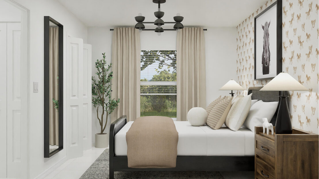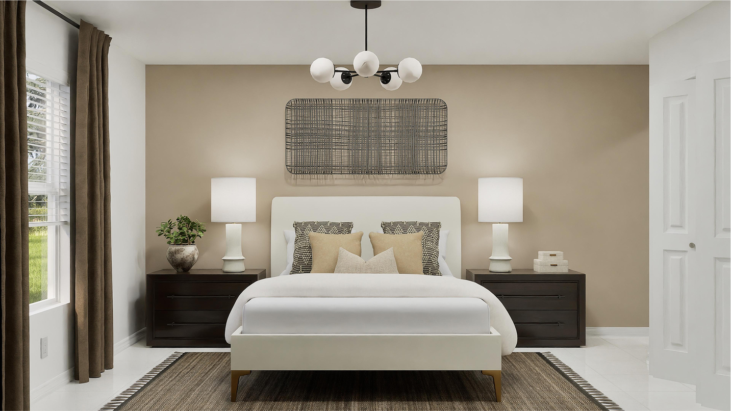 The Bravo welcomes you with a layout that balances functionality and style. At the front of the home, two secondary bedrooms share a well-appointed hall bathroom, ideal for family members or guests. A third bedroom, situated just around the corner, boasts a private bathroom, providing extra privacy and comfort. These bedrooms flow seamlessly into the heart of the home, creating a sense of openness and connectivity.