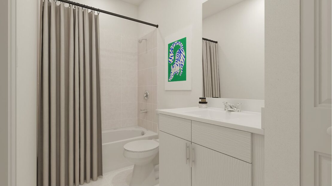The Fontana thoughtfully separates private and shared spaces. Two guest bedrooms with walk-in closets are located off the living room, providing comfort and privacy for visitors or family members. The luxurious owner’s suite offers a serene retreat with ample space and convenient access to a private bathroom. Two additional bedrooms near the family room offer flexibility for growing families or multi-generational living arrangements.