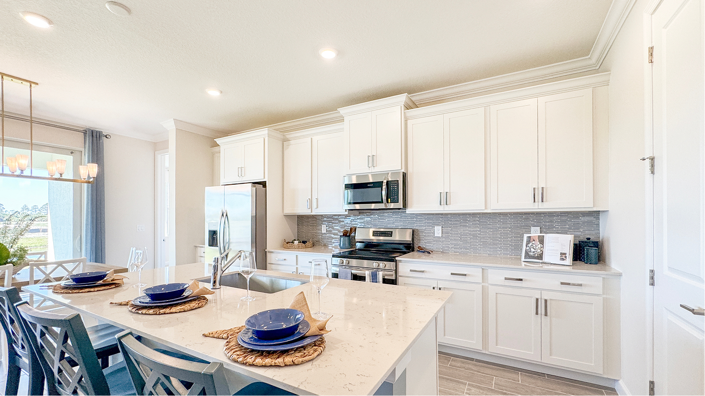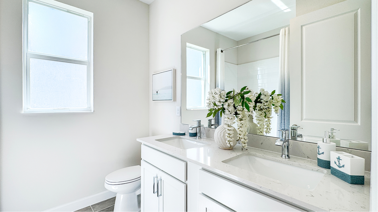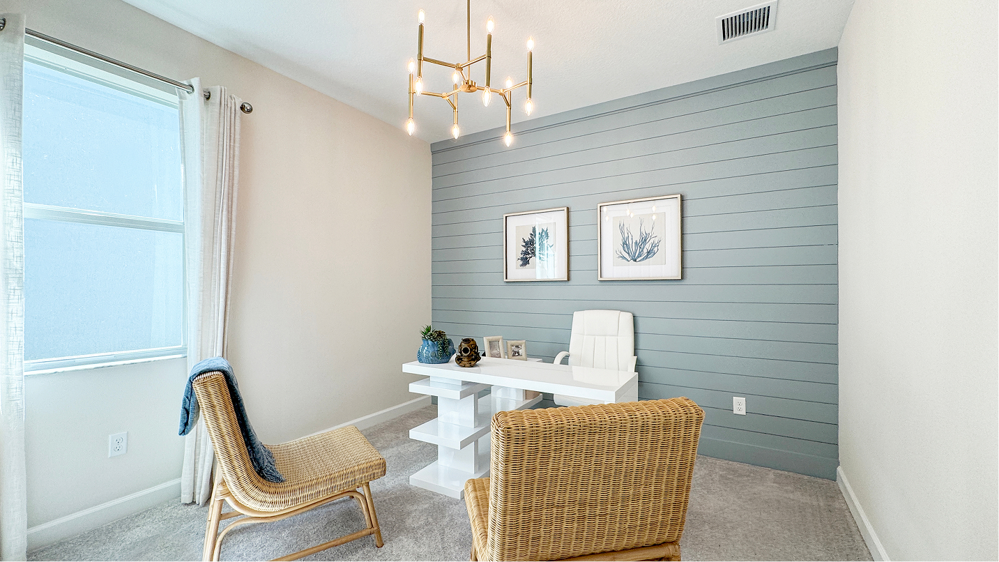 This single-story home has a comfortable layout for growing families. Two bedrooms share a bathroom at the front of the home, while down the hall is an open concept living area with a covered patio attached. Tucked into a back corner for maximum privacy is the owner’s suite, which features a walk-in closet and full bathroom.