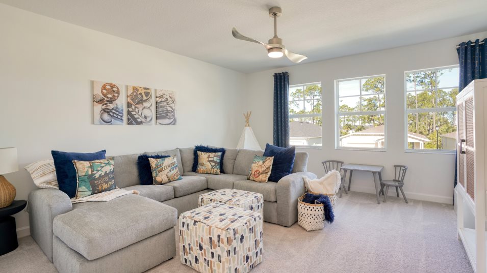 This two-story home features a comfortable layout with plenty of space for growing families. The front door leads into a foyer with a flex space attached, while down the hall is the open-concept living area with a covered patio in the back. Upstairs are four bedrooms, including the owner’s suite, as well as a game room that works well as a secondary living area.