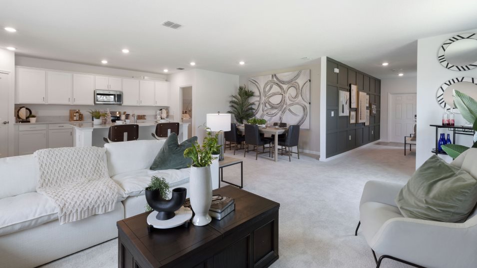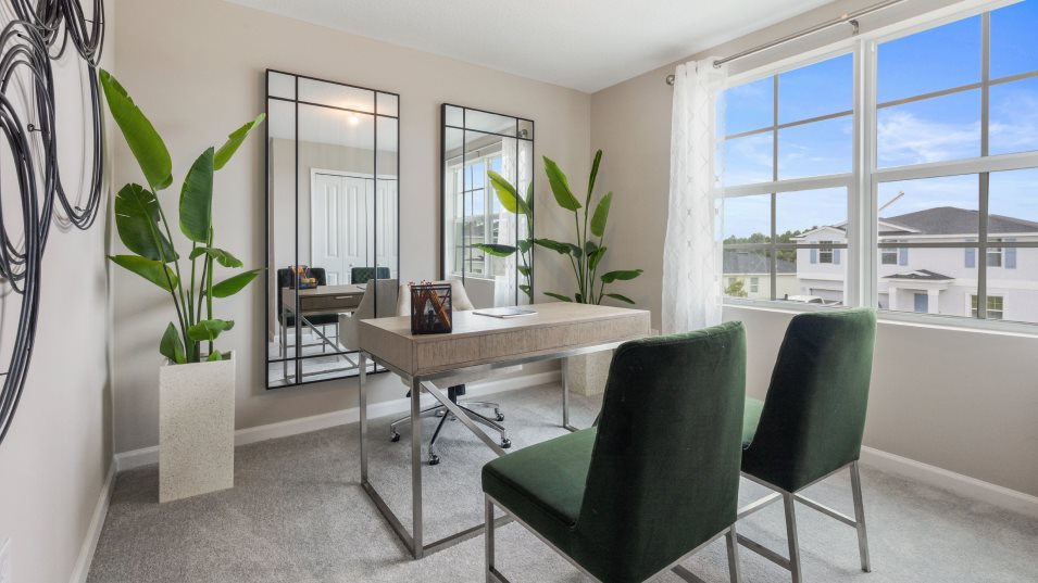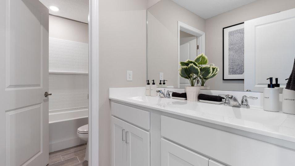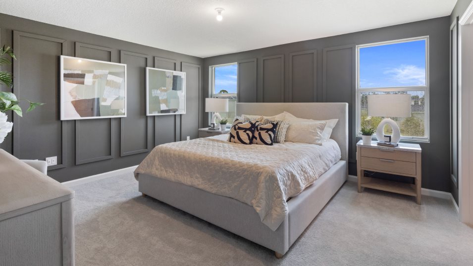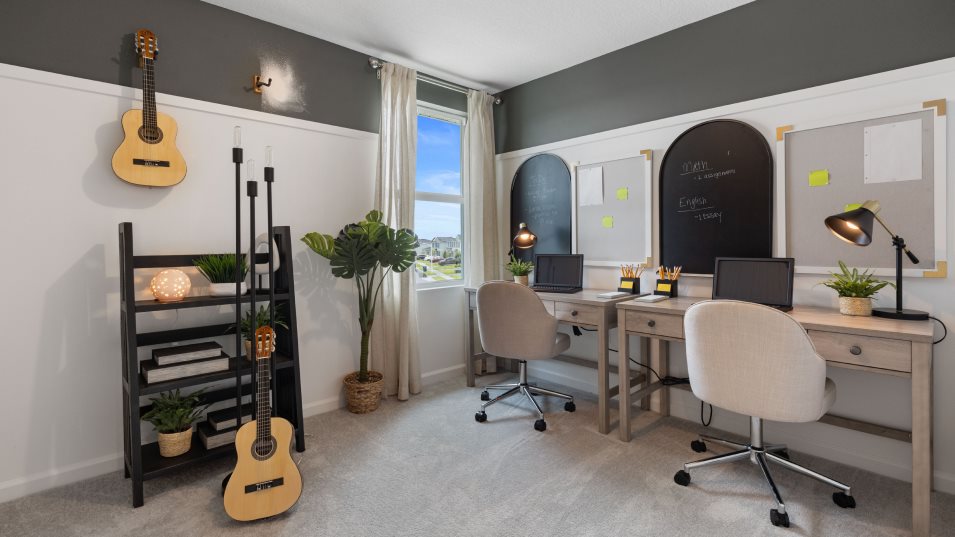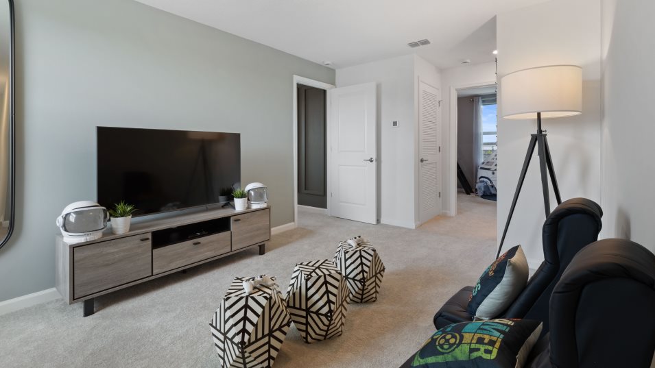 This two-story home showcases a contemporary open design among the first-floor kitchen, dining room and Great Room to promote seamless everyday living. The top level hosts a versatile loft for shared entertainment space and all five bedrooms to provide restful retreats for residents and guests. The owner’s suite is privately situated and includes an en-suite bathroom for optimal livability.
