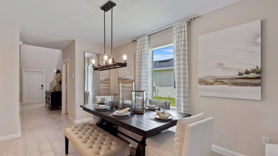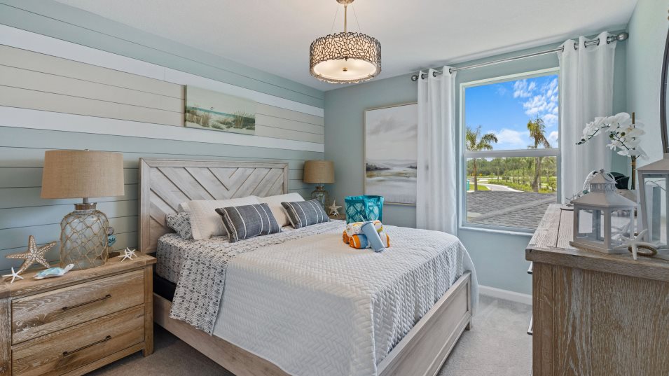 This spacious two-story home features an open-concept layout shared between the kitchen, dining and living rooms to promote effortless transitions between spaces. Nearby is a covered lanai ready for outdoor leisure. The comfortable owner’s suite is tucked on the first floor for added privacy, while the top floor hosts four secondary bedrooms and a cozy loft. A convenient two-bay garage completes the home.
