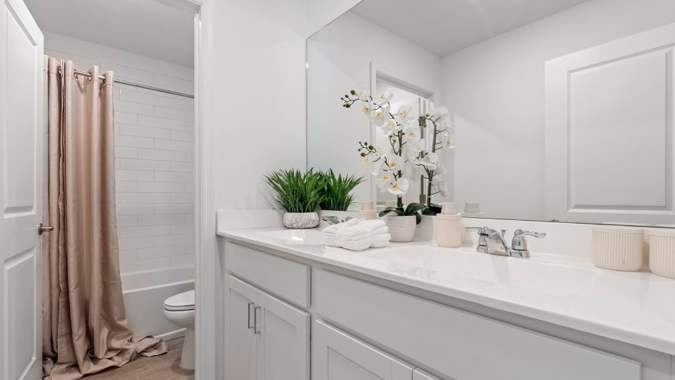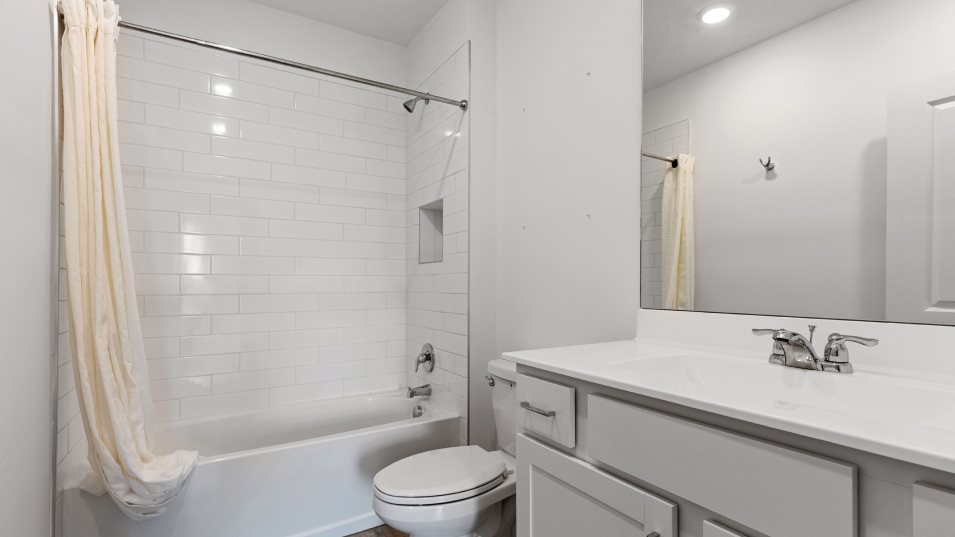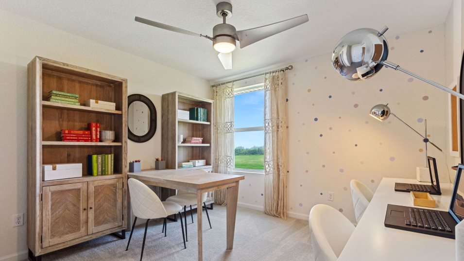This two-story home features a simple layout that offers everything a growing or large household needs. The foyer leads to an open concept layout shared between the kitchen, dining room and Great Room, along with a sixth bedroom. Upstairs are five bedrooms, including the owner’s suite with a private full bathroom, plus a cozy loft for extra shared living space.