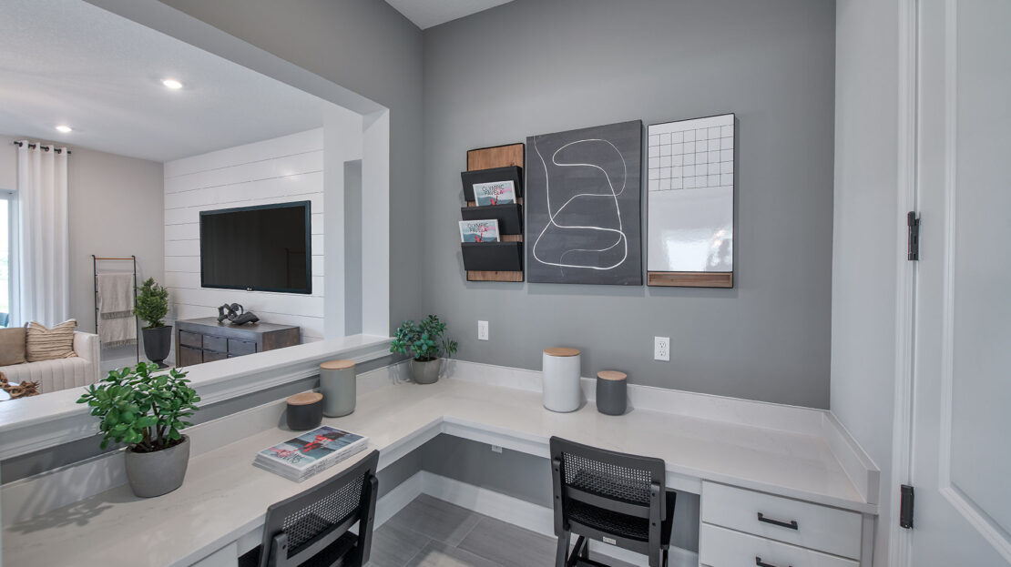 For organization and productivity, the Millstone includes a Pulte Planning Center®, an innovative space designed to manage daily tasks, homework, and schedules efficiently. This feature highlights DiVosta’s commitment to combining style with practicality in their new construction homes.