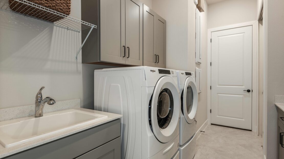 The private owner’s suite is a true retreat, featuring dual walk-in closets and a convenient laundry room pass-through for ultimate ease and functionality. The suite’s generous layout provides a relaxing haven, combining comfort with sophisticated style. Two additional bedrooms ensure ample space for family or guests, while a flexible room offers versatile options as a home office, gym, or creative space to suit your lifestyle.