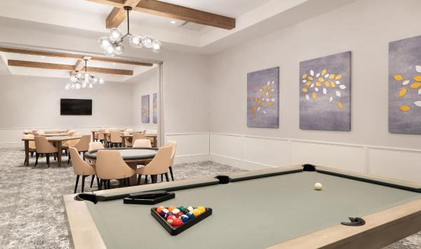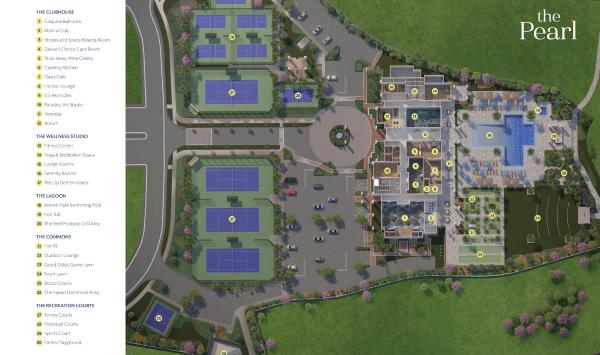 At the heart of Regency at Avenir is a private clubhouse and amenity center designed to inspire connection and recreation. Residents enjoy a resort-style pool with cabanas, outdoor BBQ areas, fire pit, and event lawn, perfect for relaxing or entertaining. Indoors, the community offers a fitness center, social lounge, ballroom, event room, card rooms, crafts room, billiards room, and a state-of-the-art golf simulator room. Outdoor amenities include tennis courts, pickleball courts, bocce courts, and a sport court, all thoughtfully designed to encourage an active and social lifestyle.