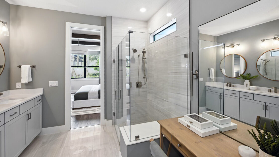 From the moment you enter, the Coral impresses with its open, flowing layout. The gathering room serves as the heart of the home, offering a warm and inviting space for family gatherings or entertaining guests. For those seeking more room to host, optional features like an extended gathering room provide extra space tailored to your needs. Zero-corner sliding doors are another highlight, seamlessly connecting indoor and outdoor living spaces to create a bright, airy environment perfect for enjoying Florida’s beautiful weather.