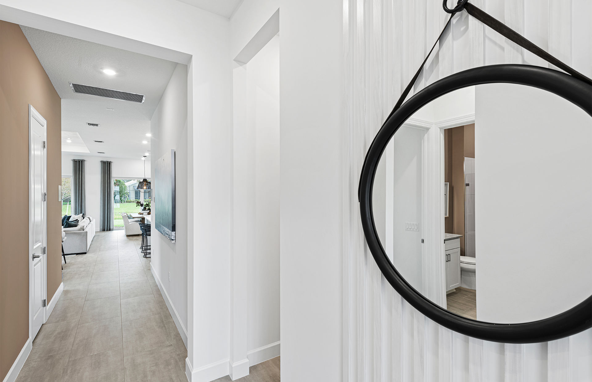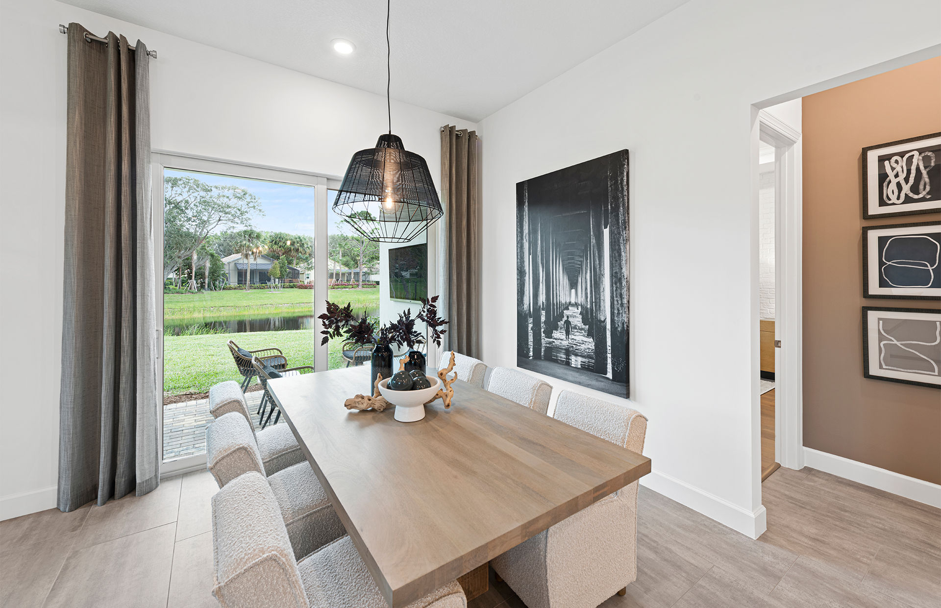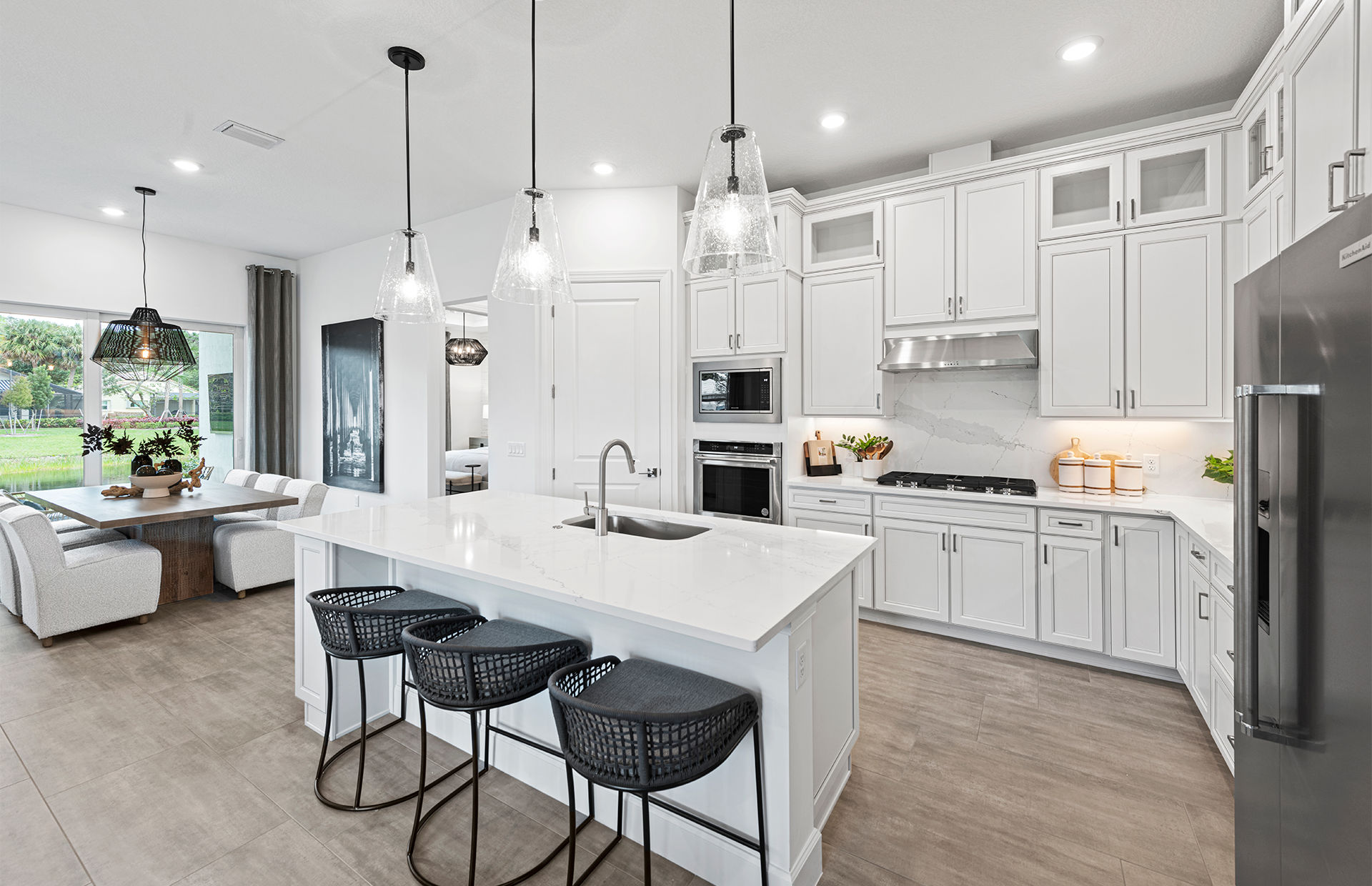 At the heart of the Mystique home is an expansive gathering room, ideal for both entertaining and relaxing with family. Adjacent to this central space, the chef-inspired kitchen features sleek countertops, ample cabinetry, and a convenient café area that makes everyday dining a pleasure. Natural light pours into the home, creating a warm and inviting atmosphere that enhances the open-concept layout. Optional sliding glass doors can further brighten the interior, seamlessly connecting indoor living with the outdoors.