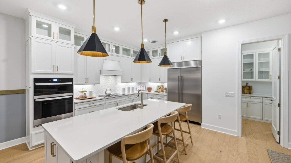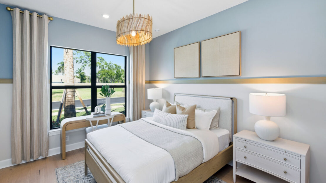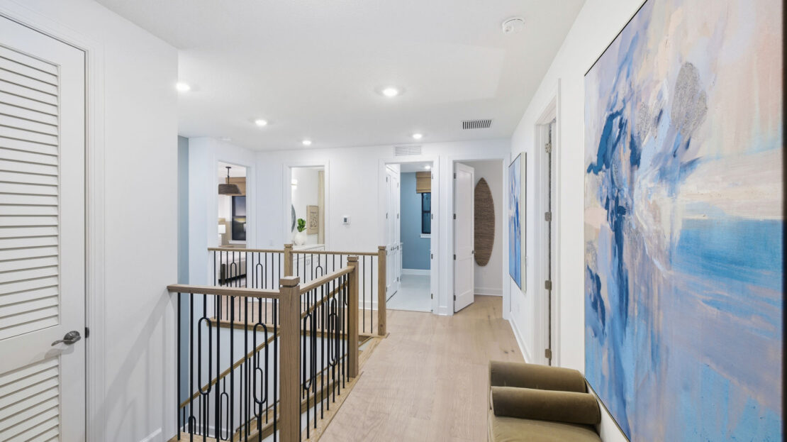 The Scarlett’s open-concept design is perfect for modern Florida living. The expansive gathering room serves as the heart of the home, seamlessly connecting to the gourmet kitchen and dining area. Optional upgrades, such as a pocket sliding door in the gathering room, allow natural light to flood the space, bringing the outdoors in and creating an inviting atmosphere for family and friends. Additional customization options, including an extra upstairs bathroom and a flex room, provide flexibility to tailor the home to your unique lifestyle.