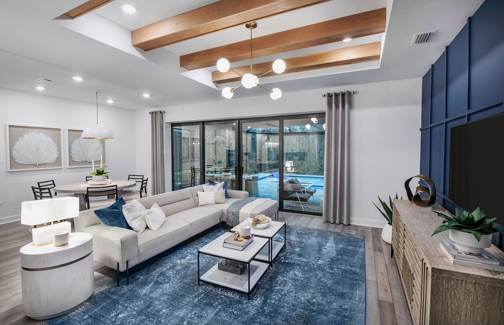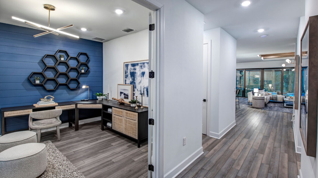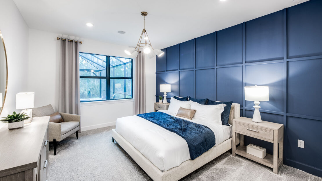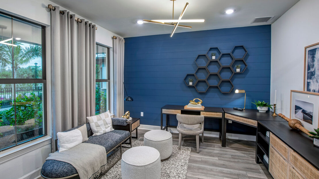 The heart of the Whitestone is the gathering room, where optional pocket sliding doors create a seamless transition between indoor and outdoor living—perfect for entertaining or enjoying Florida’s sunshine. The open-concept design flows effortlessly into the kitchen and dining areas, offering a versatile space that meets both daily living and special occasion needs.