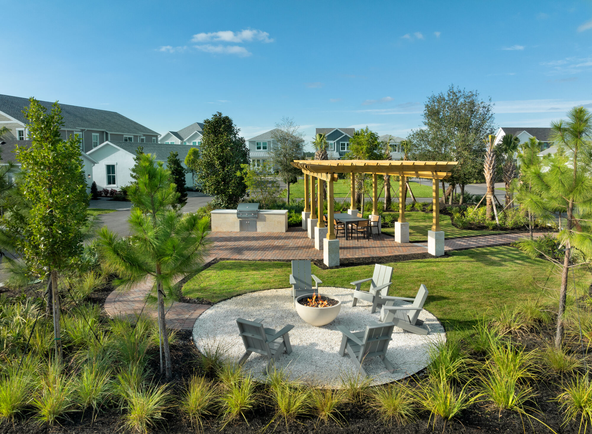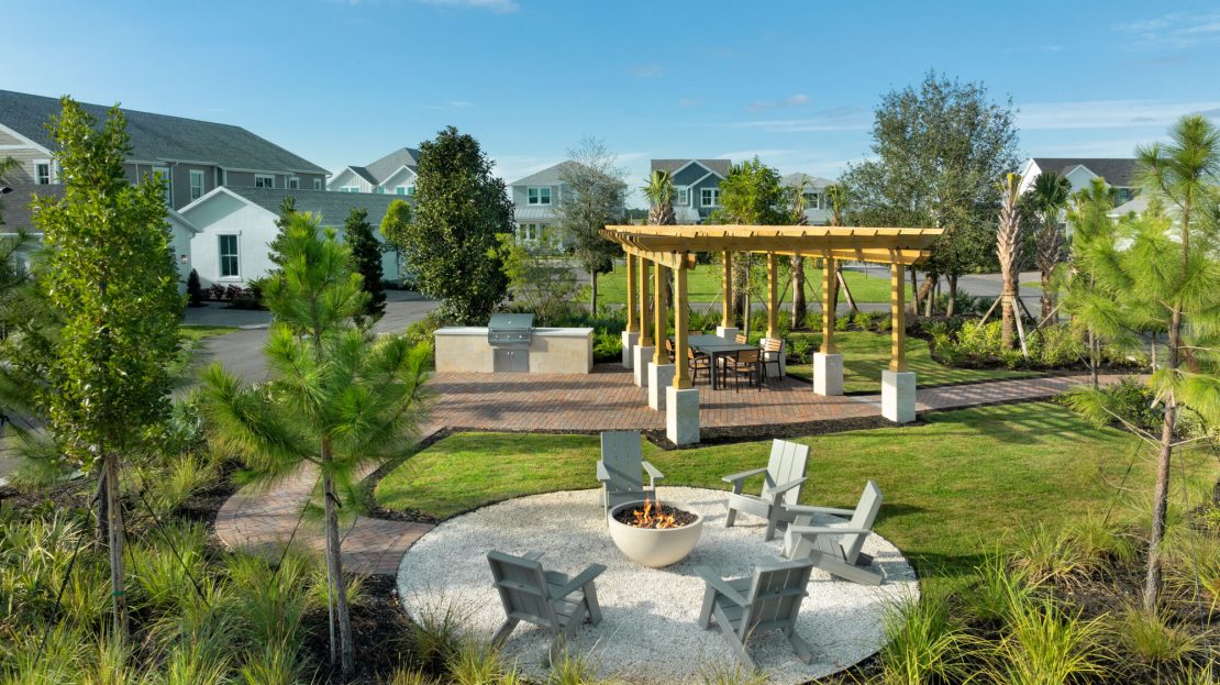 Life in Newfield – Rosette Park centers around connection, wellness, and the beauty of Florida’s outdoors. The community’s signature amenity, the Citrus House Wellness Center, invites residents to challenge their fitness goals or unwind by the sparkling pool in a refreshingly serene atmosphere. Those who prefer hands-on relaxation can enjoy the Community Farm Plots, where neighbors come together to tend their individual gardens and share the rewards of homegrown produce.