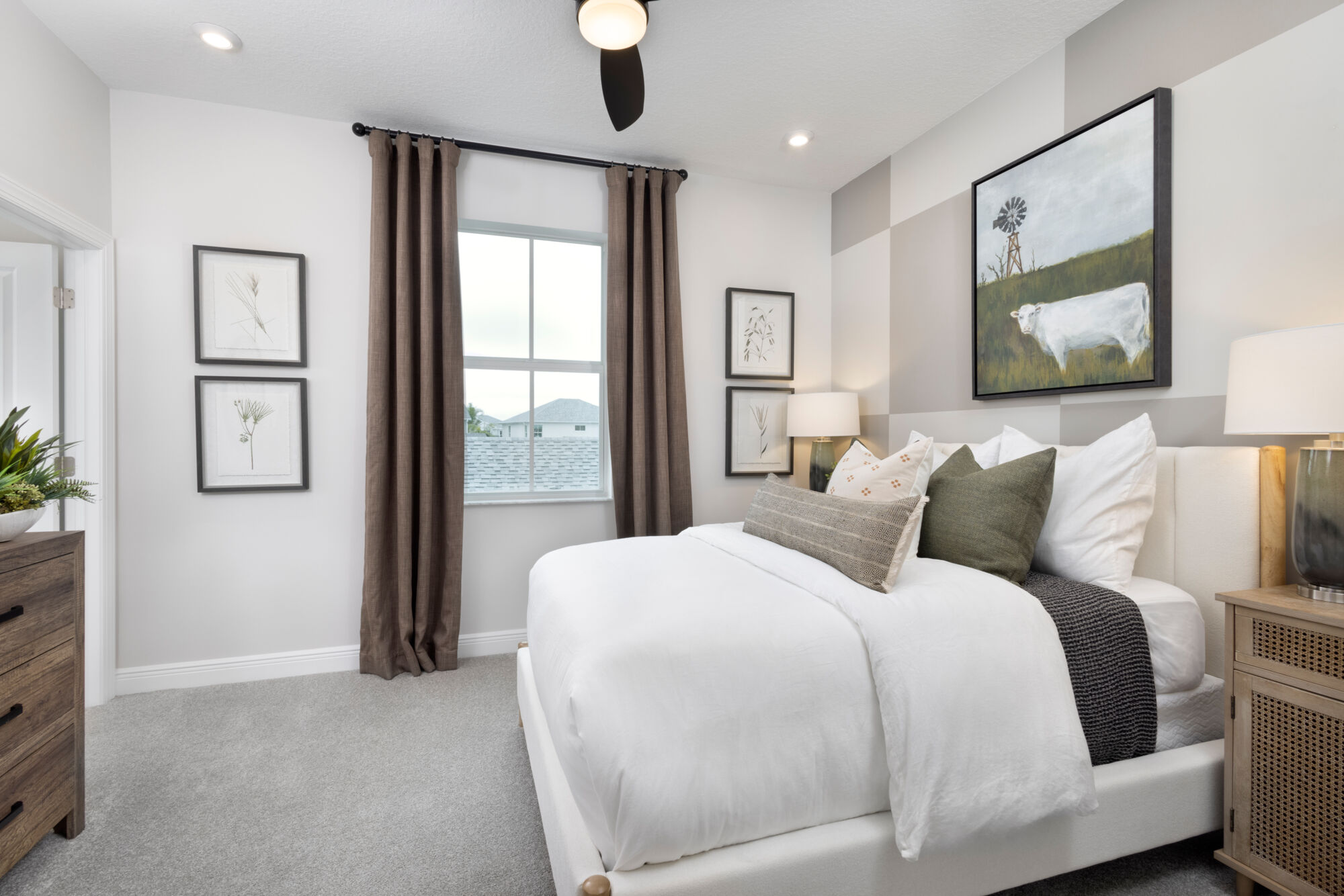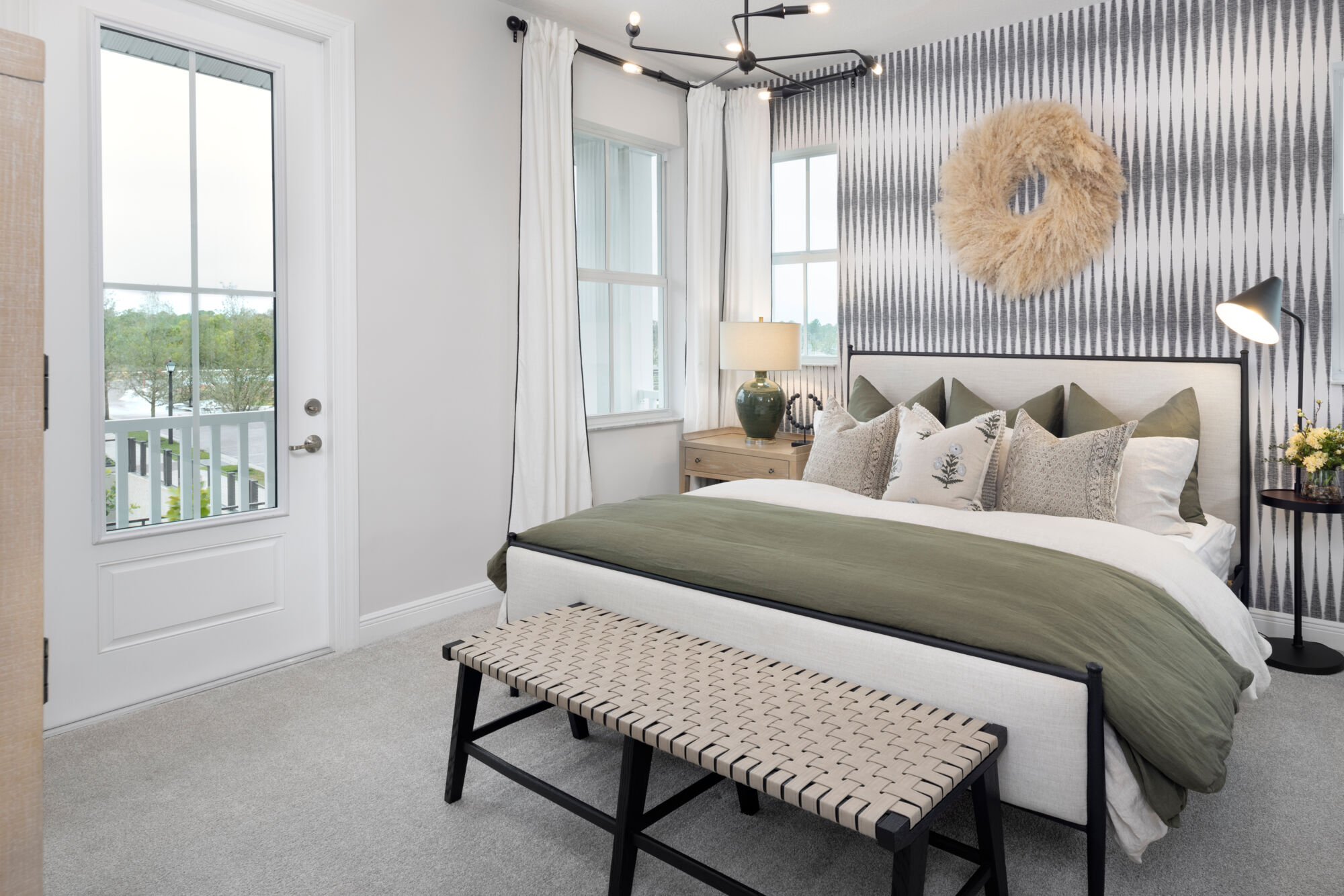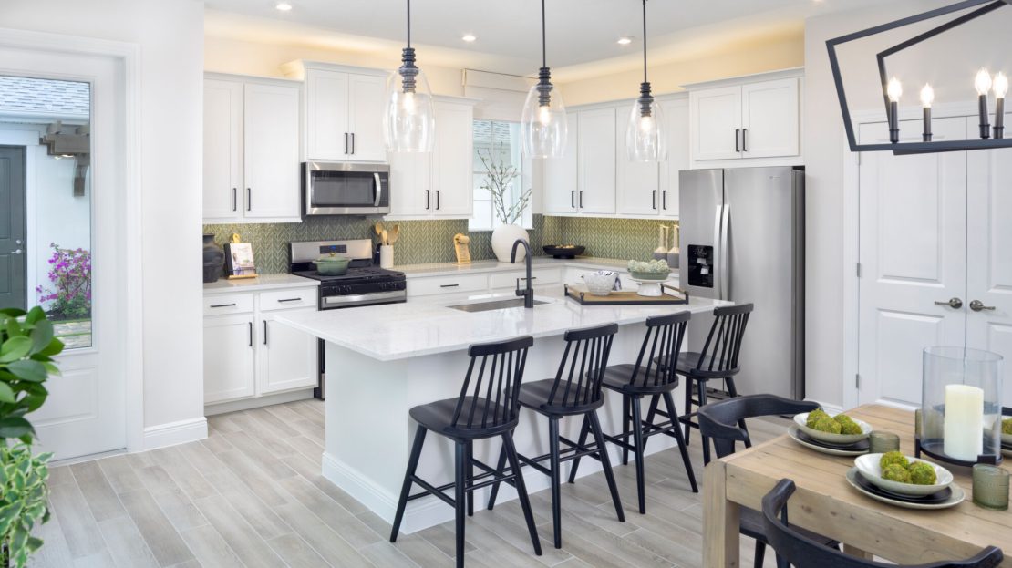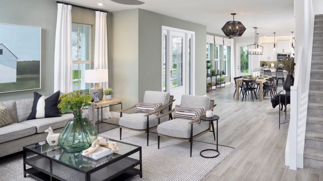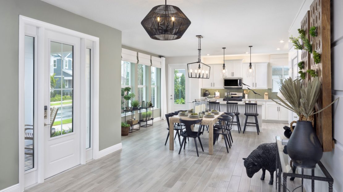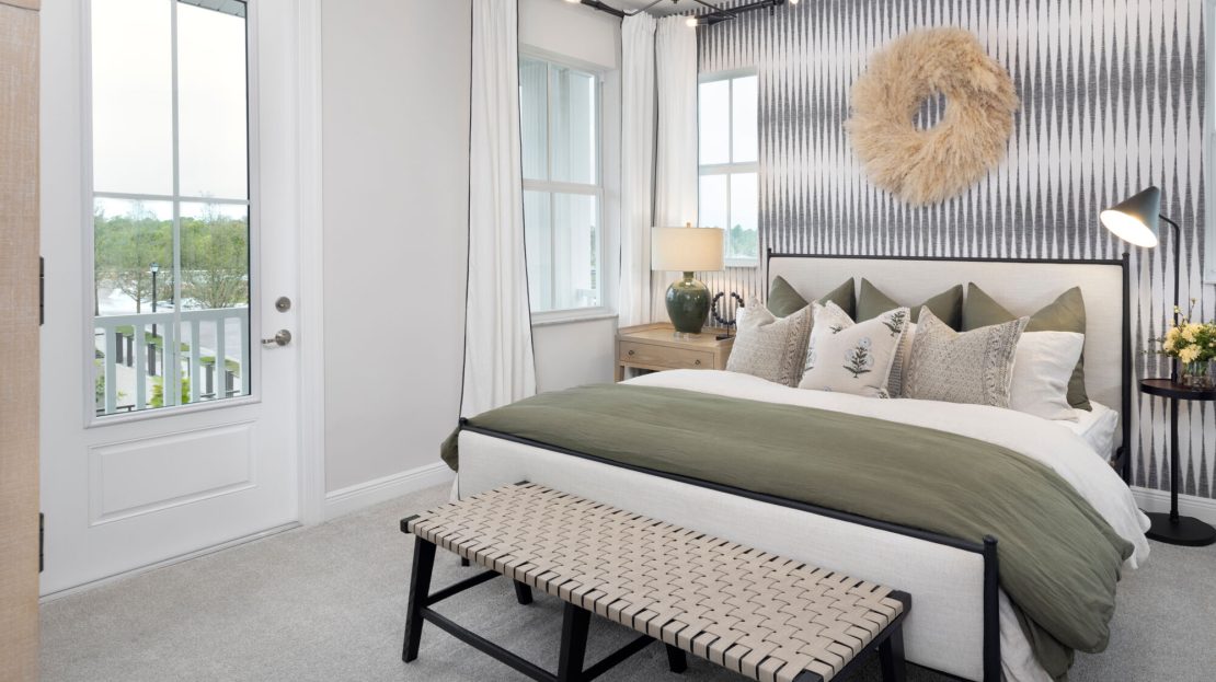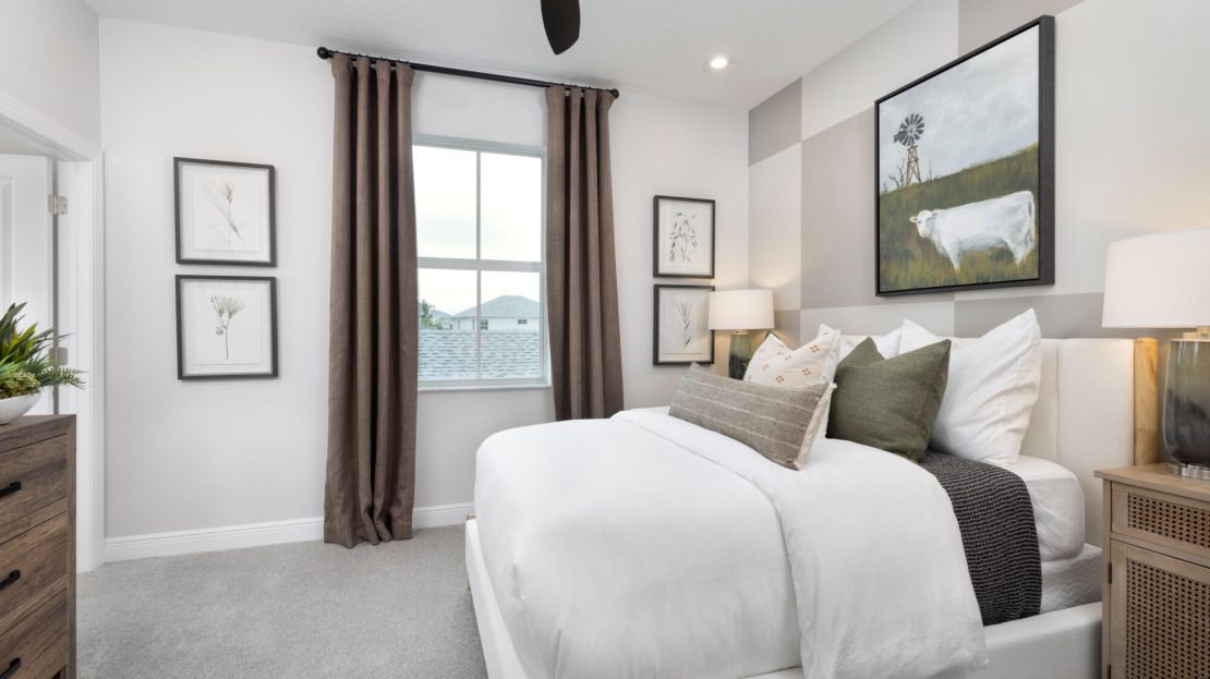 At the heart of the Aster is a modern kitchen that caters to both culinary enthusiasts and casual cooks. Sleek countertops, ample cabinetry, and thoughtfully positioned appliances make meal preparation effortless and enjoyable. The adjacent dining and living areas create a seamless space for gatherings, whether hosting friends or enjoying quiet evenings at home. Large windows invite Florida’s sunshine in, adding warmth and vibrancy to every corner.