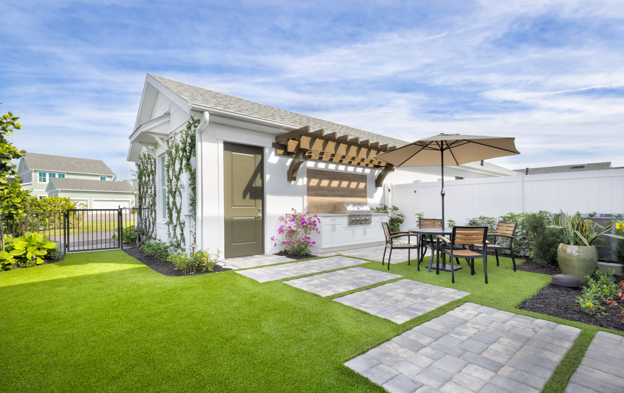Outside, the two-car garage provides convenience and extra storage, while the low-maintenance exterior ensures more time to enjoy the community’s amenities and surroundings. Residents of Newfield – Rosette Park Townhomes and Villas benefit from a welcoming neighborhood atmosphere, beautifully landscaped streets, and easy access to local shopping, dining, and recreational opportunities in Palm City.