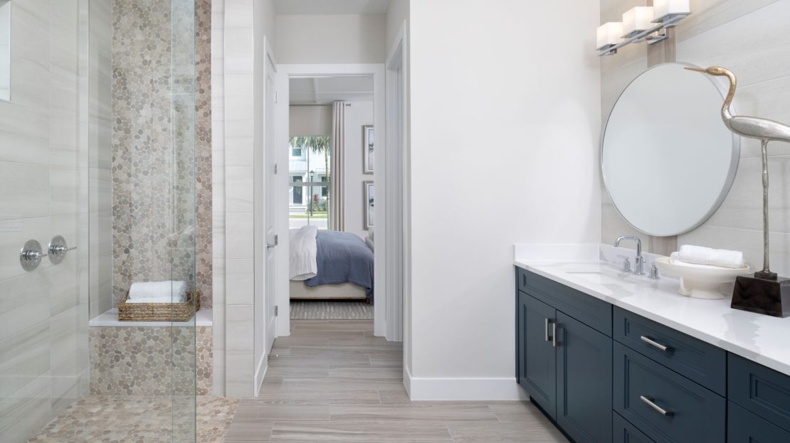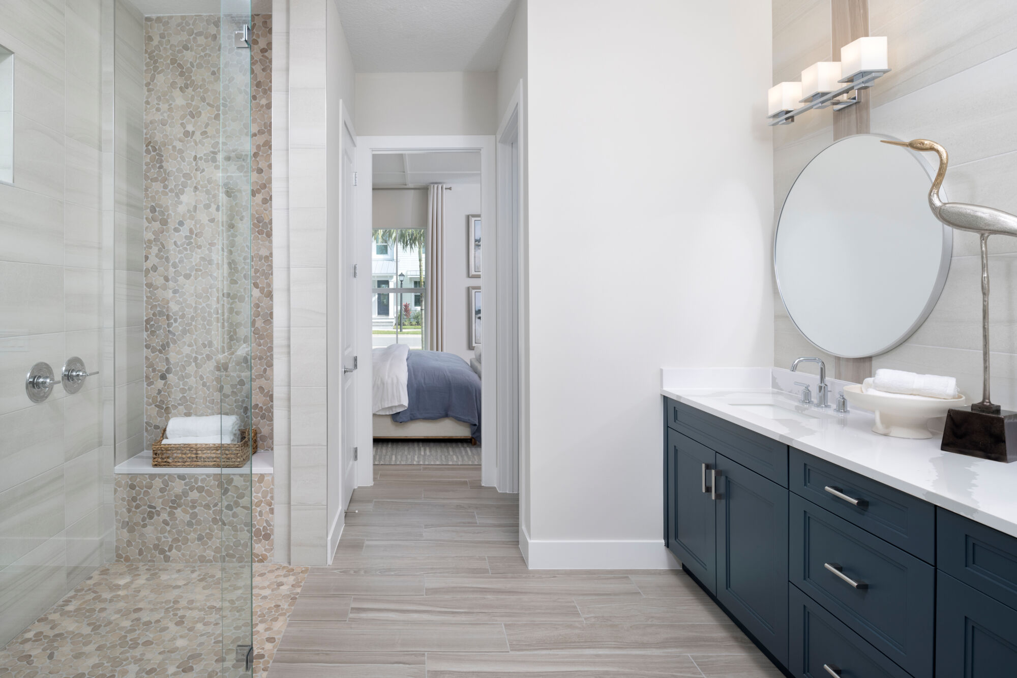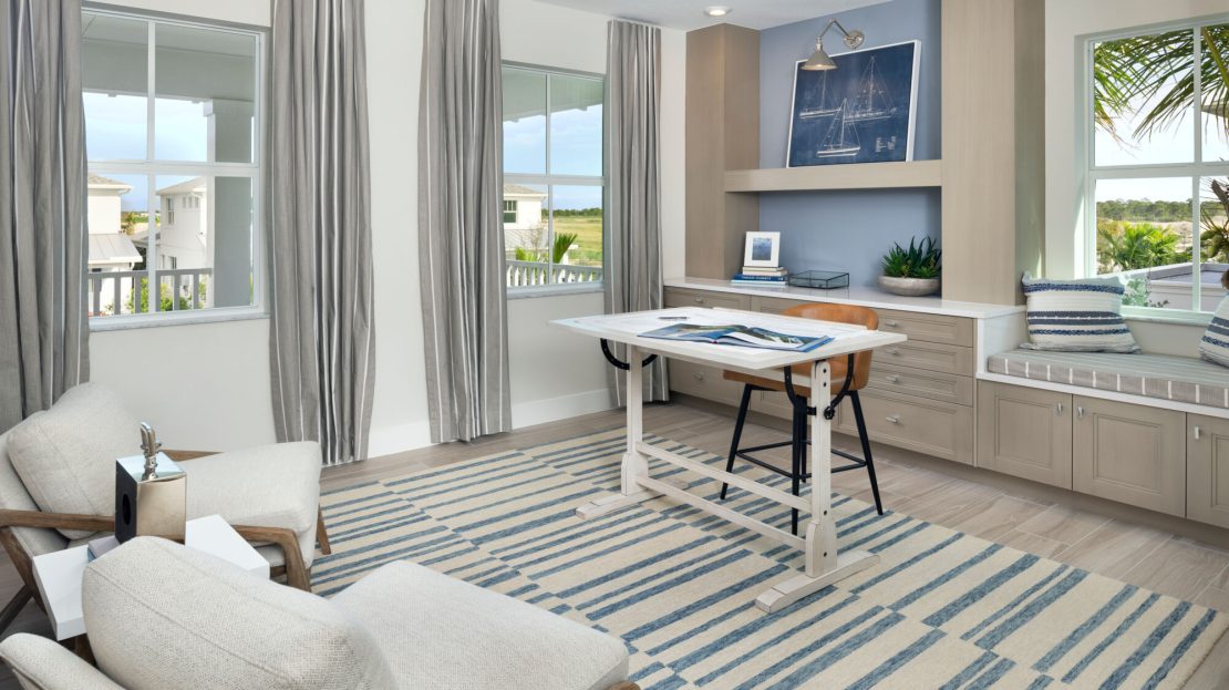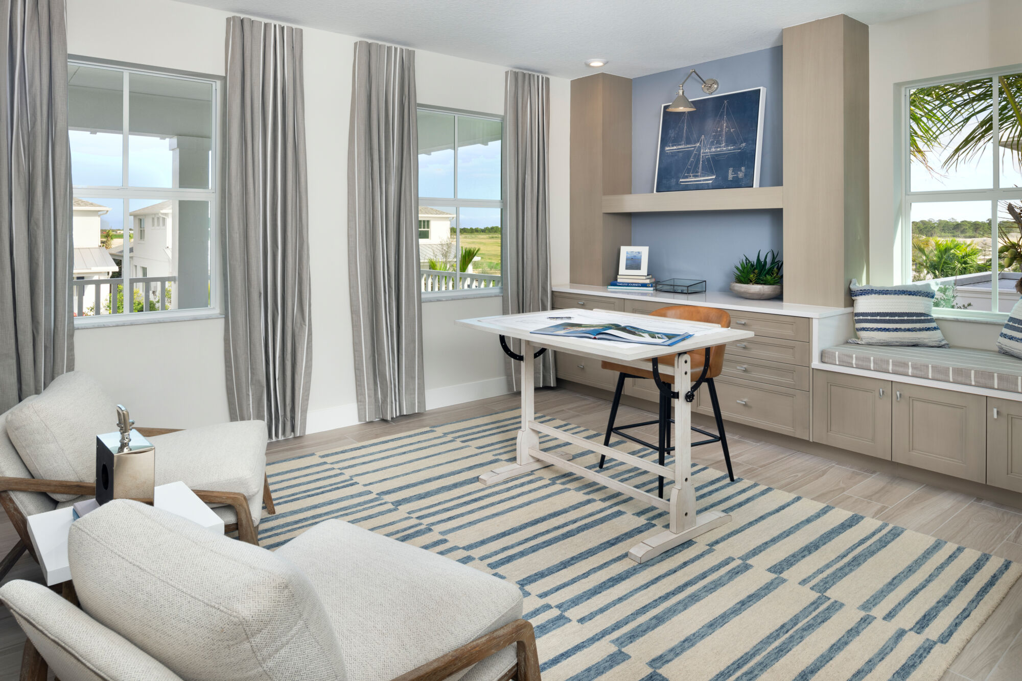 The Seaside’s master suite is a true retreat, offering generous proportions, a spa-like en-suite bathroom, and a large walk-in closet. Each additional bedroom is thoughtfully sized and paired with well-appointed bathrooms, ensuring comfort for family members and guests alike. A dedicated home office or flex space adds versatility for remote work or personal projects.