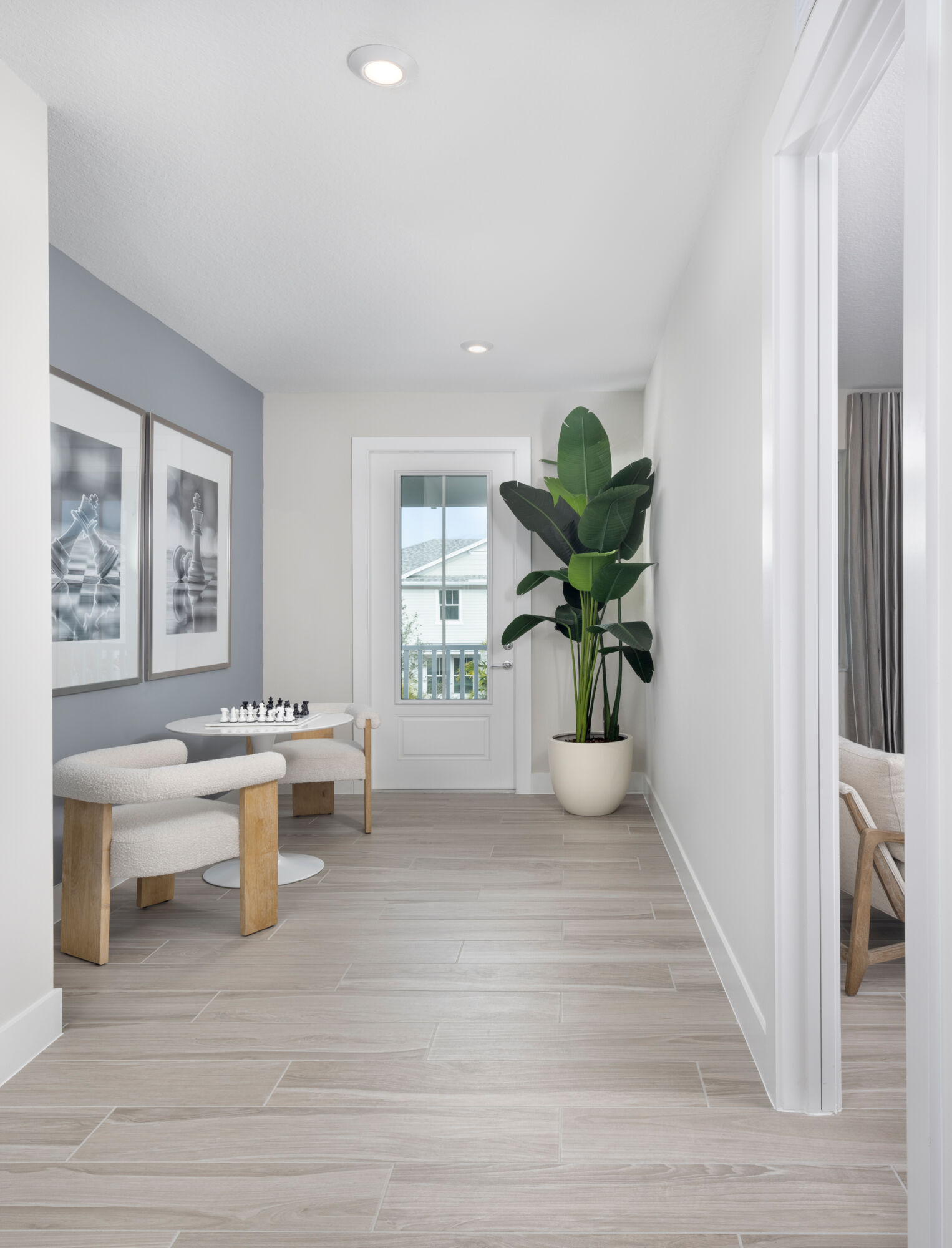 Outdoors, the Seaside extends its living space with a covered patio, perfect for alfresco dining, entertaining, or simply relaxing while enjoying Florida’s pleasant climate. The two-car garage provides ample storage and convenience for vehicles and recreational equipment.