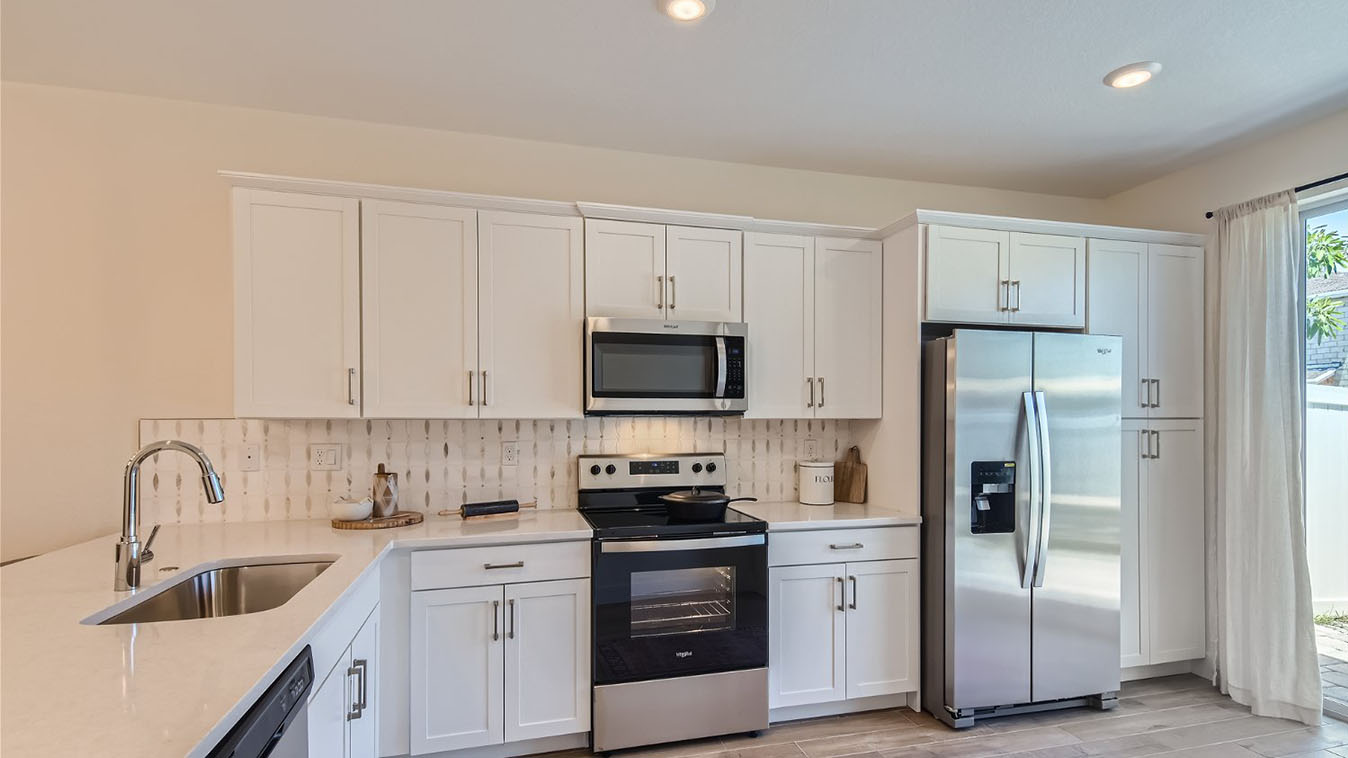 Inside, residents are greeted by a blend of elegance and functionality. Kitchens feature 3CM granite countertops, stylish waterfall islands, and sleek subway tile backsplashes, creating a space that is both inviting and highly functional. Stainless steel appliances elevate the culinary experience, while open layouts make entertaining effortless. Bathrooms offer a spa-like atmosphere with quartz countertops, frameless shower doors, and carefully selected finishes that reflect modern sophistication. Impact-resistant glass windows provide peace of mind while allowing natural light to flow throughout each home. PVC fenced yards add privacy, and smart design touches ensure every residence feels secure, efficient, and welcoming.