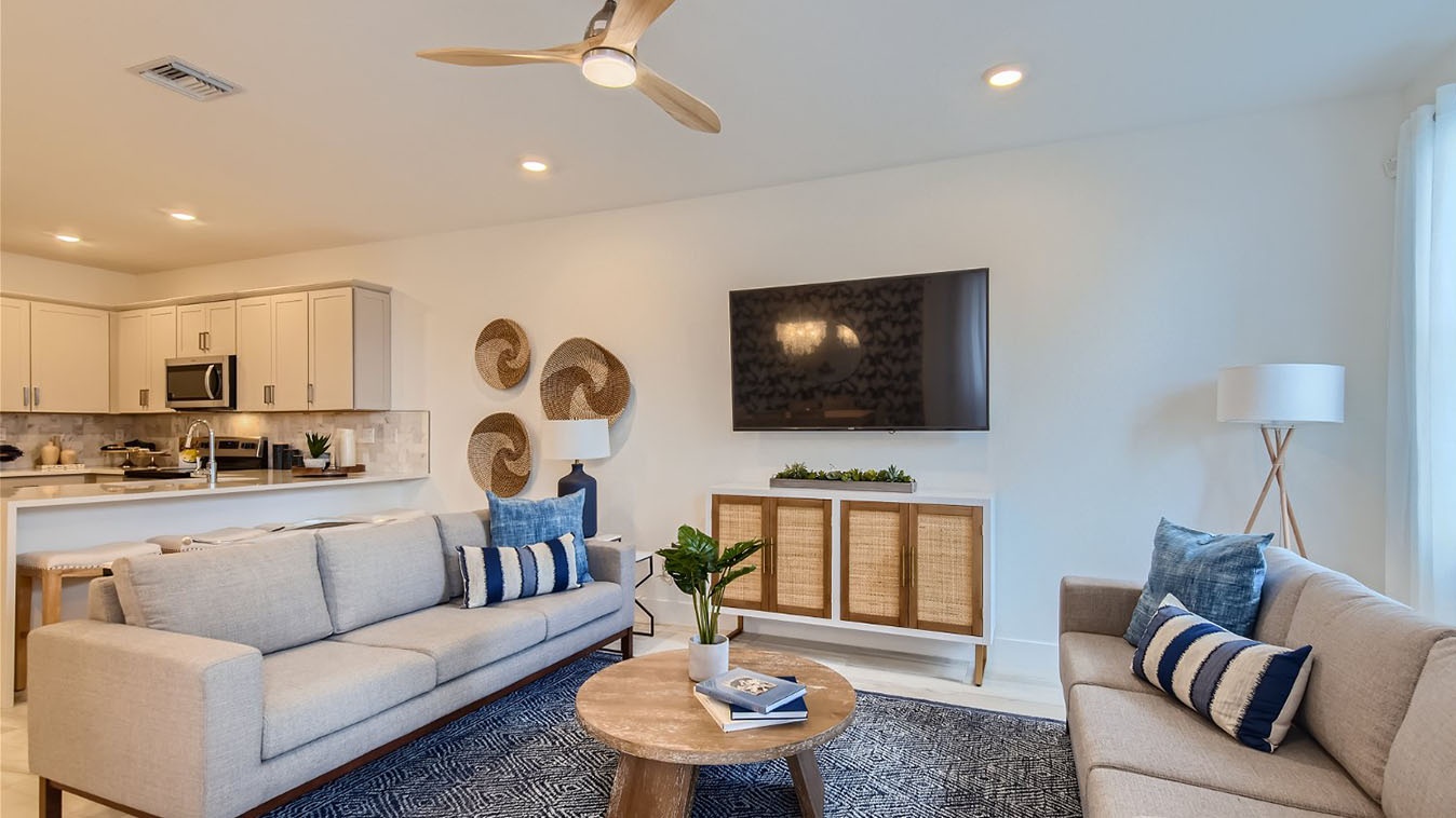 One of the standout features of the Bonnet model is that it is the only floorplan in Merrick Square that includes a covered lanai. This outdoor extension of the home provides an inviting space to relax, dine, or enjoy the Southeast Florida weather year-round. Whether used for morning coffee or evening downtime, the covered lanai adds meaningful value and a unique touch to the overall design.