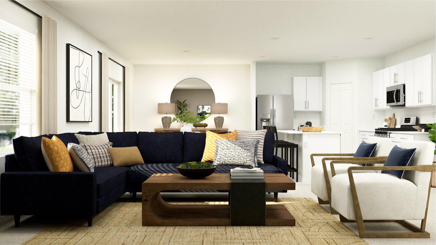 This expansive two-story home boasts a well-designed layout, featuring a first floor dedicated to shared living and entertaining. The open concept design seamlessly connects the kitchen, dining room and family room, with a patio extending the interior space outdoors. Upstairs, a spacious loft separates the three secondary bedrooms from the serene owner’s suite. Completing the home is a convenient two-car garage.
