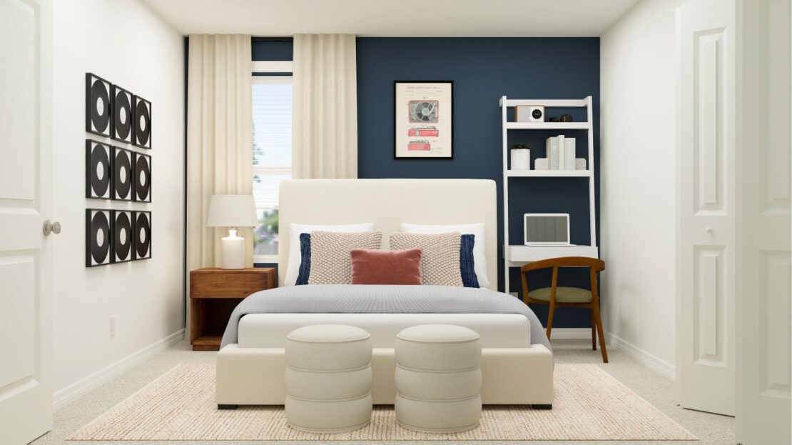 This new two-story home boasts a modern layout with an open-concept floorplan consisting of a stylish kitchen, dining room and family room on the first floor. A convenient bedroom is located toward the back of the home, perfect as a guest suite or home office. Five additional bedrooms can be found upstairs, including the luxurious owner’s suite, surrounding a versatile loft space.