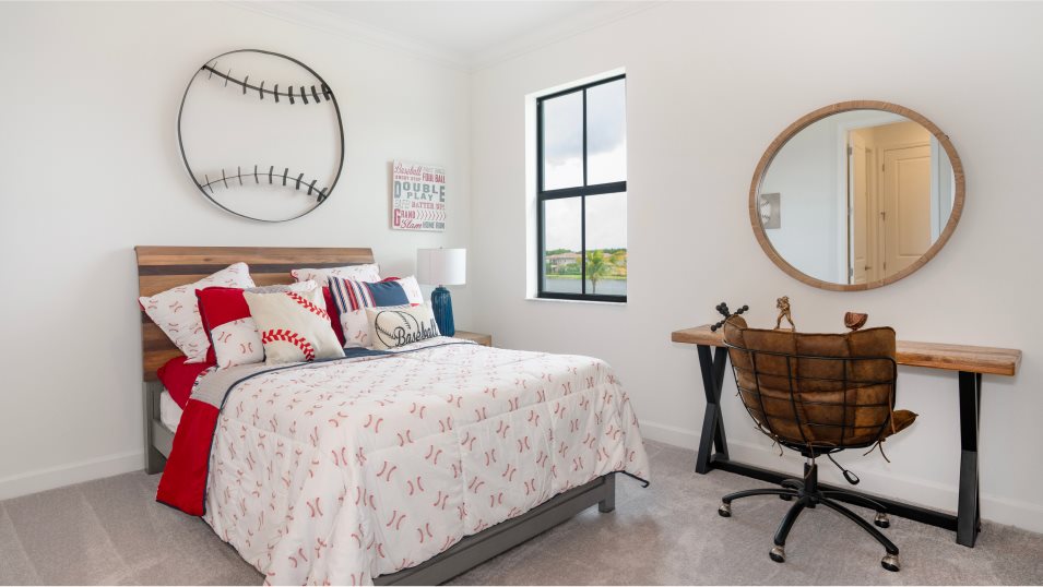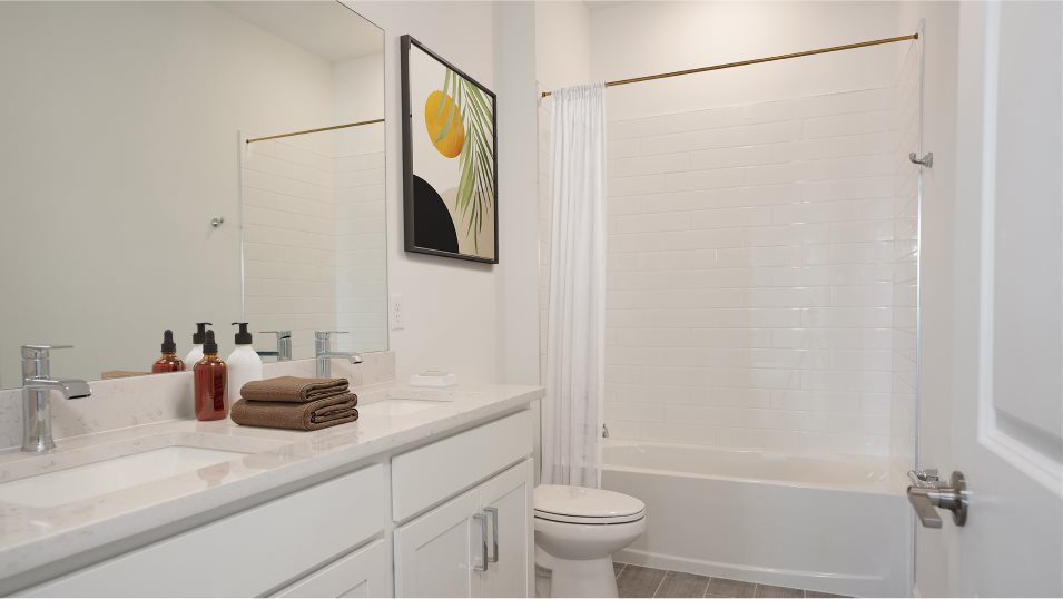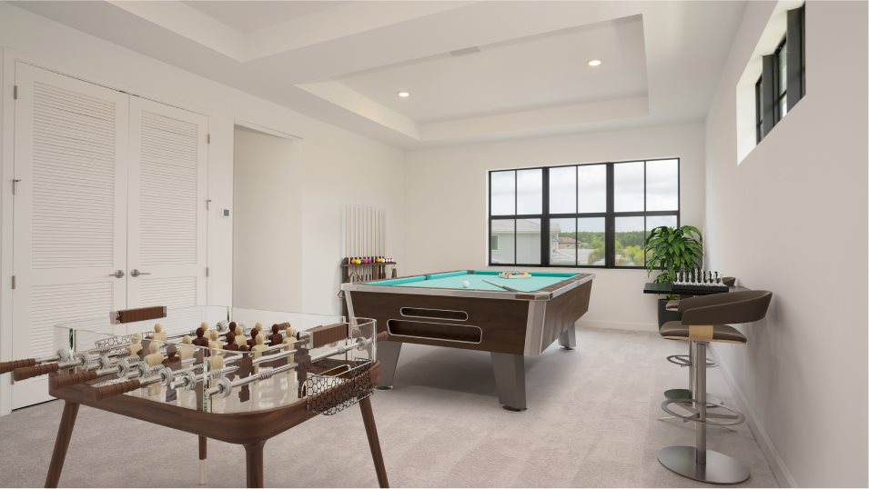 This two-story home delivers modern elegance and ample room to grow. Down the double-height foyer is a low-maintenance open design among the modern kitchen, dining room and living room, along with a covered terrace. In a private corner is the spacious owner’s suite with an adjoining bathroom and oversized walk-in closet. Throughout the home is an upstairs game room ideal for entertaining, a two-car garage and four secondary bedrooms to provide residents and guests a restful retreat.