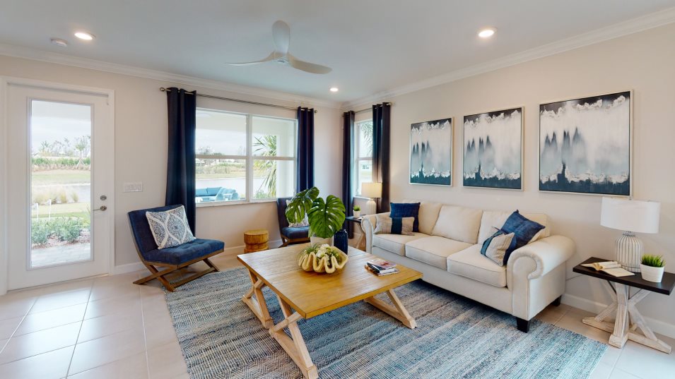 Exclusive to active adults 55+ and better, this well-designed single-story home includes open dining and Great Room spaces while a peninsula separates the kitchen for an organized look. The attached patio provides natural light and the nearby owner’s suite features two walk-in closets for optimal organization. Rounding out the home is a convenient two-car garage at the front.