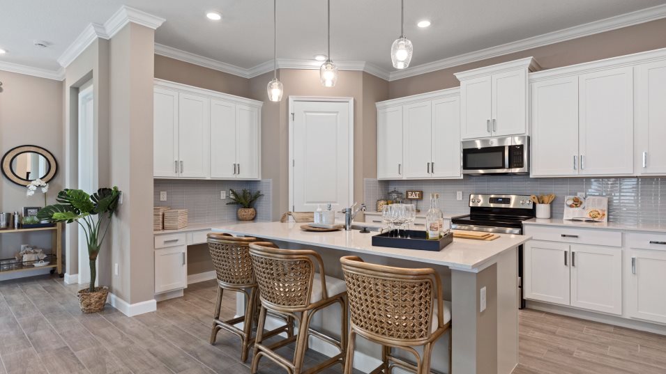 Exclusive to active adults 55+ and better, this single-story home’s open design gives it a modern flare. The Great Room and dining room lead to a covered patio perfect for indoor-outdoor living, while the kitchen is designed for ease of use and comes with a center island for increased counter space. The expansive owner’s suite, which includes a private bathroom, has convenient access to the rest of the home. A versatile den, two secondary bedrooms and a two-car garage complete the layout.