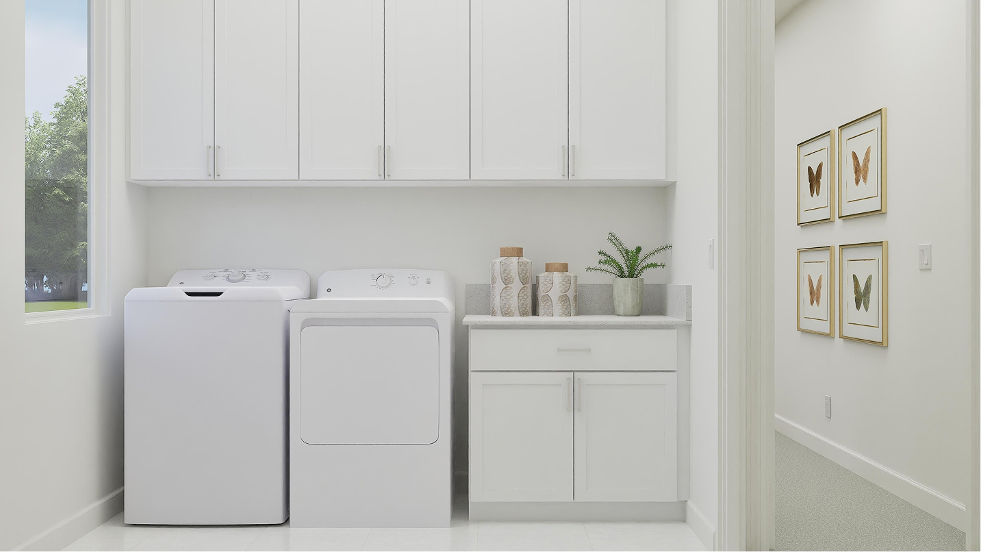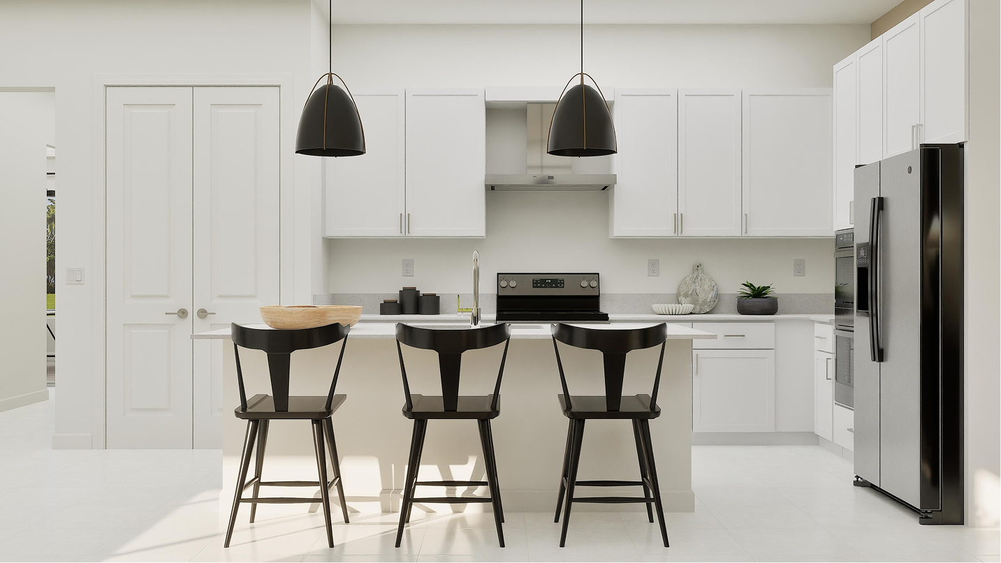 The Palma welcomes you with a bright and inviting foyer that leads to a first-floor bedroom and full bathroom, providing a perfect space for guests or multi-generational living. Flowing naturally from the foyer, the open-concept kitchen, living, and dining areas create a seamless space for daily life and entertaining. The kitchen features modern finishes and smart design, making meal preparation both efficient and enjoyable. Adjacent to the living area, a lanai extends the home outdoors, creating an ideal environment for relaxing, entertaining, or simply enjoying the Florida sunshine.