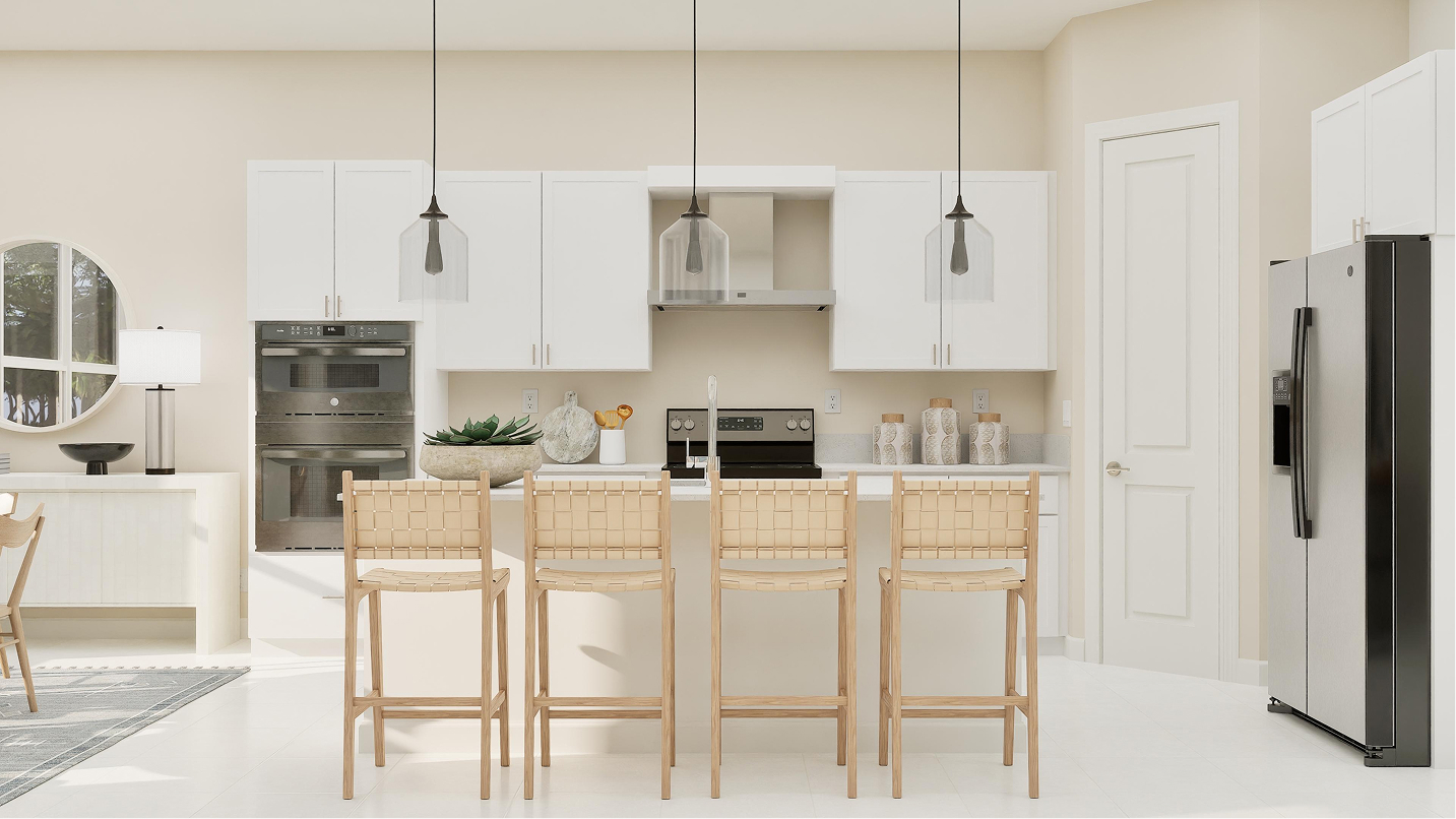 Step inside the Vienna and be welcomed by a thoughtfully designed foyer that leads to a bedroom and full bathroom at the front of the home, ideal for guests or multi-generational living. The open-concept main floor seamlessly connects the kitchen, living, and dining areas, creating a bright and inviting space perfect for entertaining or daily family life. The kitchen boasts modern finishes and ample counter space, making meal preparation both convenient and enjoyable. Adjacent to the living areas, a spacious lanai extends your living space outdoors, providing the perfect setting for relaxation, gatherings, or enjoying Florida’s beautiful weather.