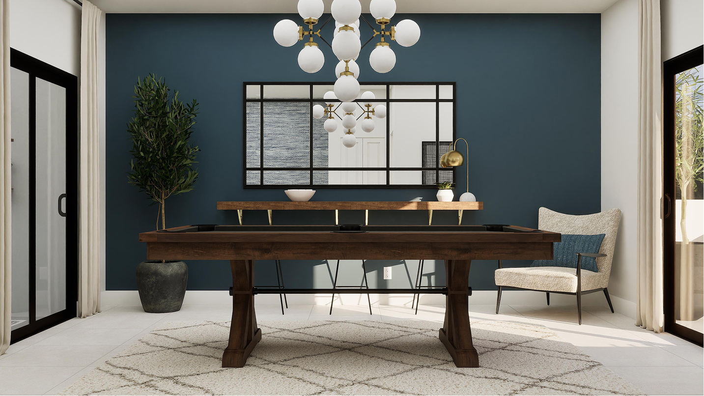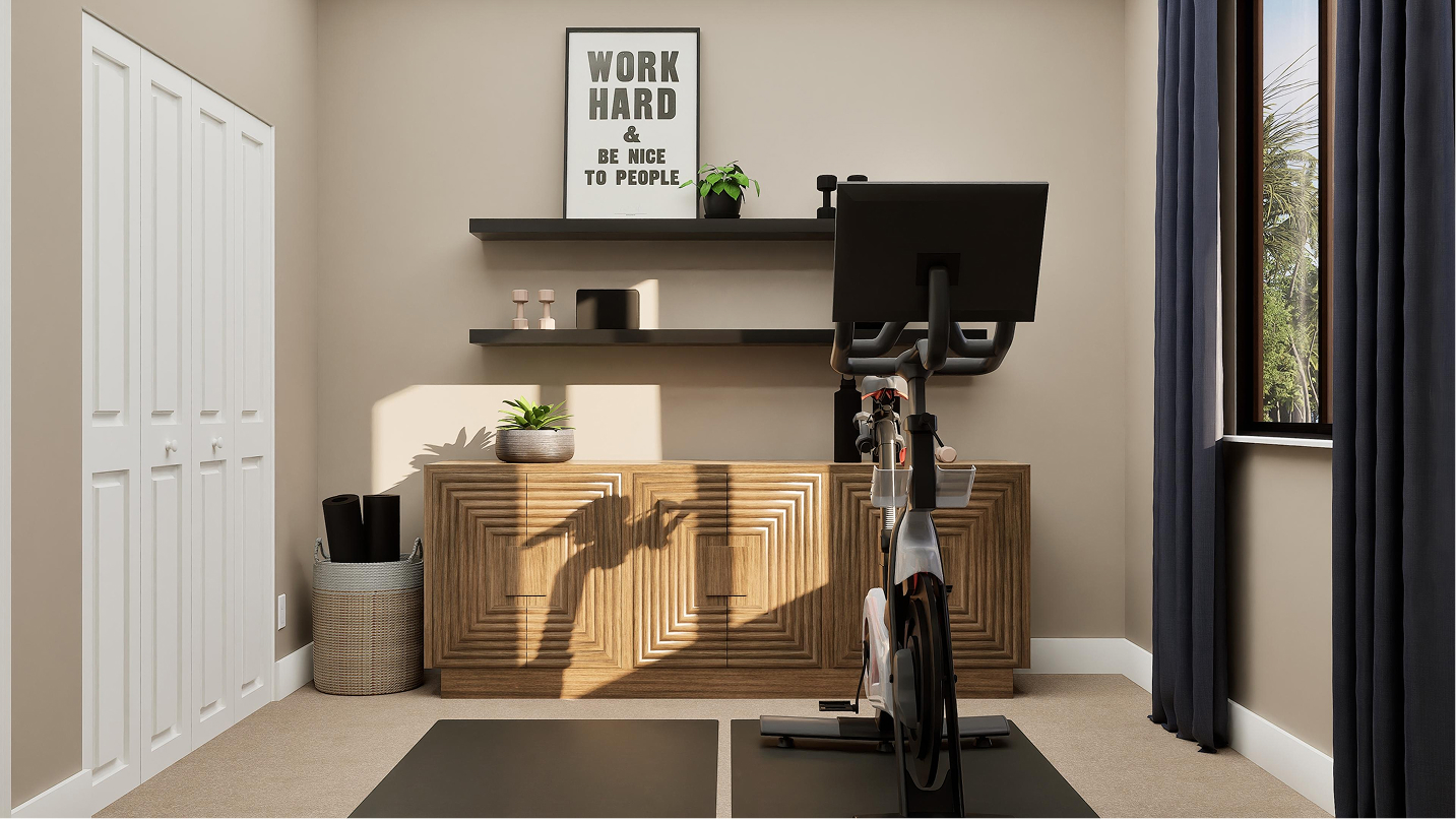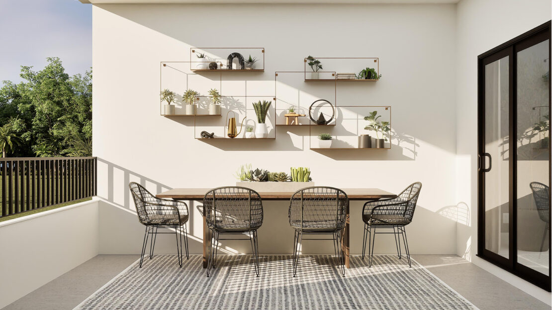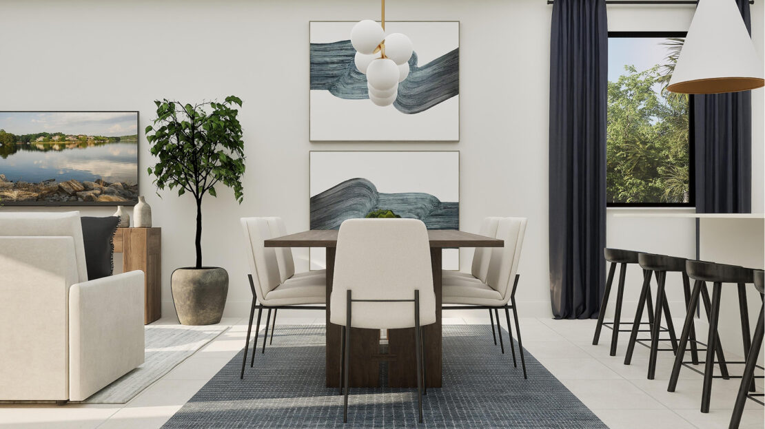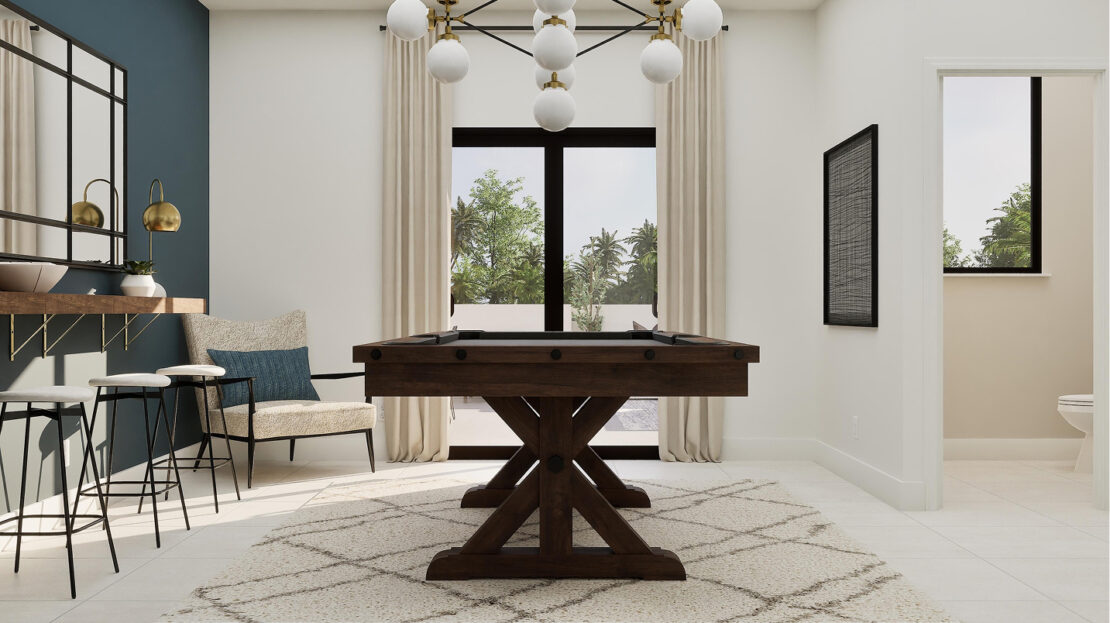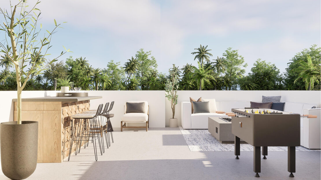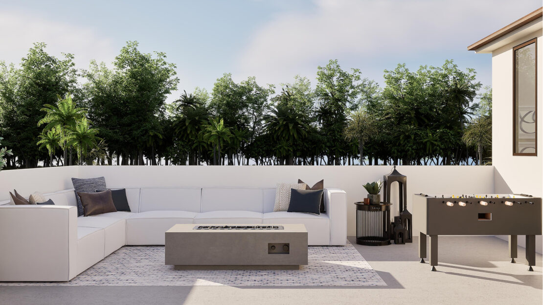 The third floor of the Marlo – Skyview introduces a versatile game room, a perfect shared living space for entertainment, hobbies, or a media lounge. Adjacent to the game room is a covered terrace, offering an ideal setting for year-round outdoor enjoyment, whether hosting gatherings or simply unwinding under the Florida sky.