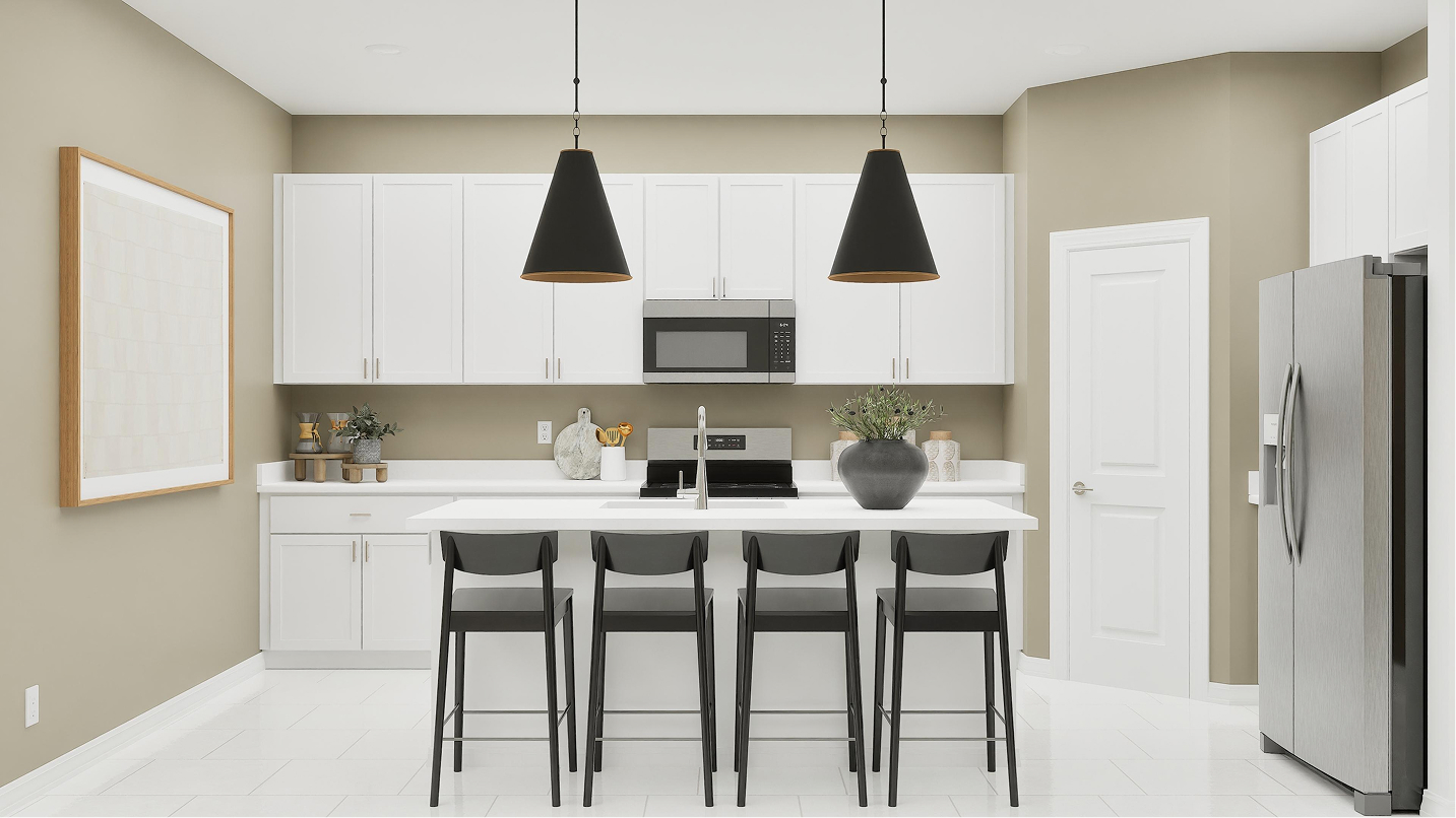 This new single-story home is perfect for families who live an active lifestyle. Two secondary bedrooms share a bathroom in the hall at the front of the home, while a third is around the corner with a private bathroom. Down the foyer is the open living area, which includes a kitchen, dining room and family room with a covered patio. The owner’s suite is tucked into the rear corner with an attached bathroom.