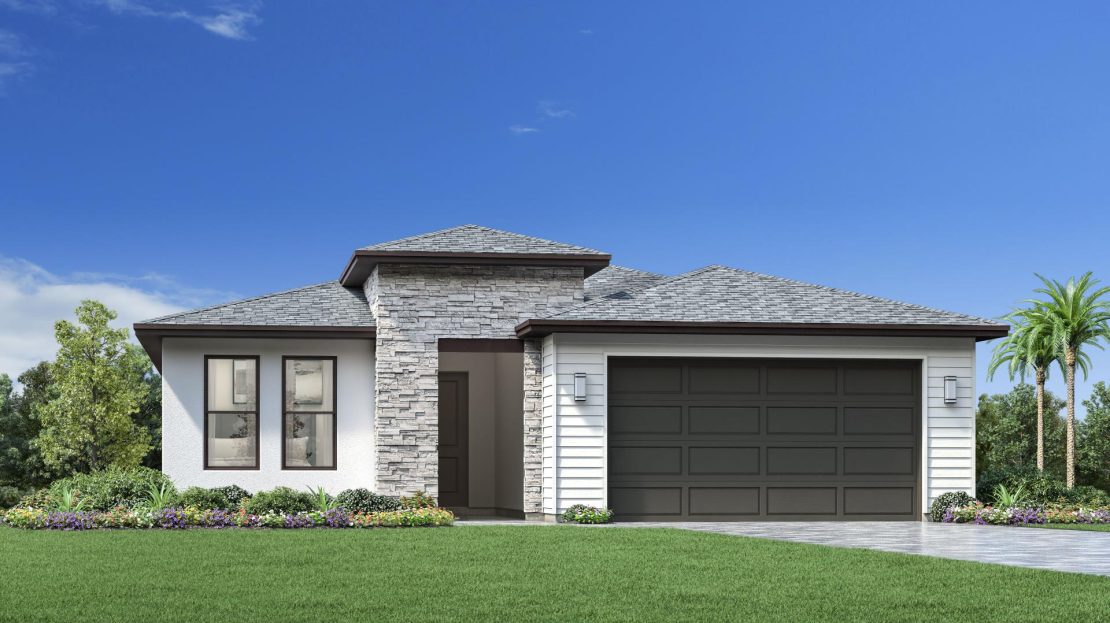 This beautifully designed single-family home offers three bedrooms, two bathrooms, and 1,867 square feet. The open-concept layout enhances the spacious feel, while gorgeous water views create a serene backdrop for everyday living. The gourmet kitchen offers premium finishes with tons of cabinetry for ample storage and a large island, making it the heart of the home. The primary bedroom is a true retreat with a walk-in closet and a tranquil bath with dual vanities, a luxe shower with a seat, and a private water closet. A spacious secondary bedroom at the front of the home is just steps from a full hall bath. Step outside to the large covered lanai, complete with a privacy wall and outdoor kitchen pre-wires, perfect for entertaining and relaxing in an outdoor oasis.