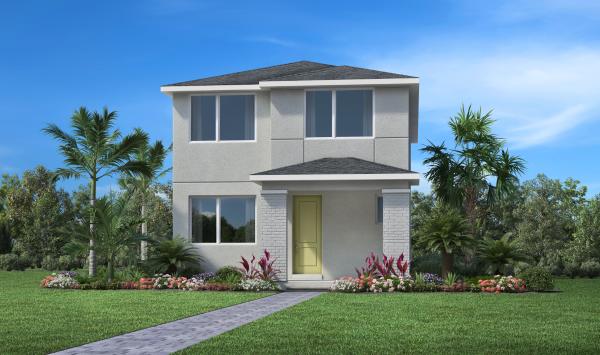 Stylish urban comfort. The Bellamy’s inviting porch and entry flow into the welcoming foyer and a bright flex room, revealing the spacious great room, dining room, and desirable covered lanai beyond. The well-equipped gourmet kitchen is highlighted by a large center island with breakfast bar, plenty of counter and cabinet space, and ample walk-in pantry. The serene primary bedroom suite is enhanced by an enormous walk-in closet and spa-like primary bath with dual-sink vanity, large luxe shower, and private water closet. Generous secondary bedrooms feature sizable closets and shared hall bath. Additional highlights include a convenient powder room, centrally located laundry, and additional storage.